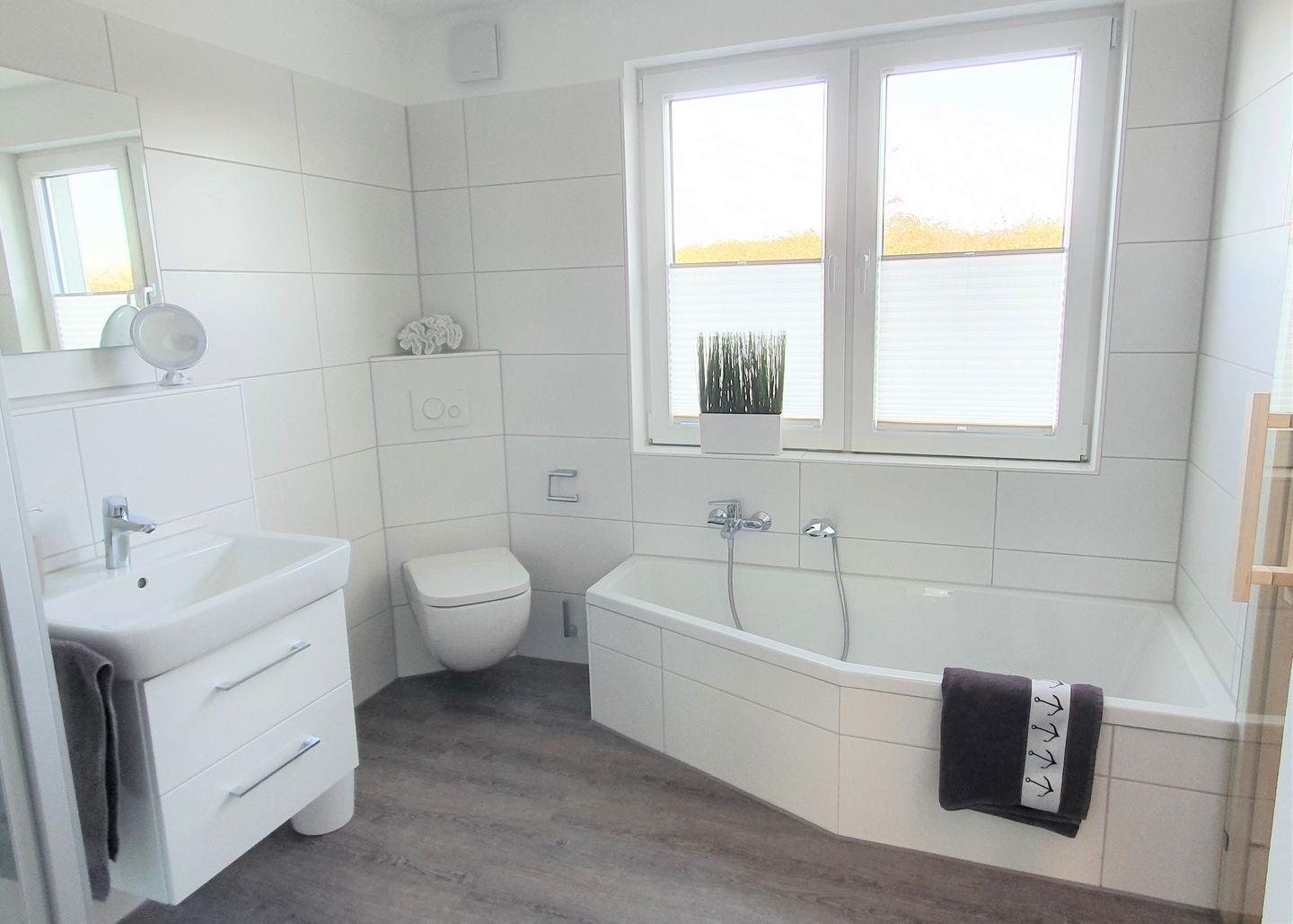 An stürmischen und/oder regnerischen Tagen kann das Badezimmer mit seiner Vollausstattung zum Wellnesstempel werden.