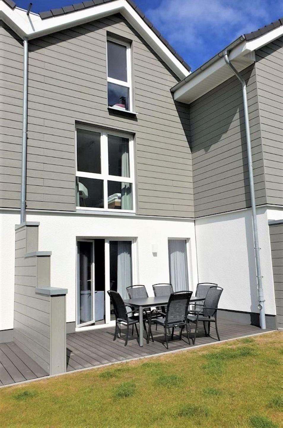 Die Süd-Terrasse ist mit einem Tisch und sechs Sitzgelegenheiten sowie einem Sonnenschirm möbliert. Ein Strandkorb steht Ihnen am Badestrand (nicht Hundestrand) kostenlos zur Verfügung.