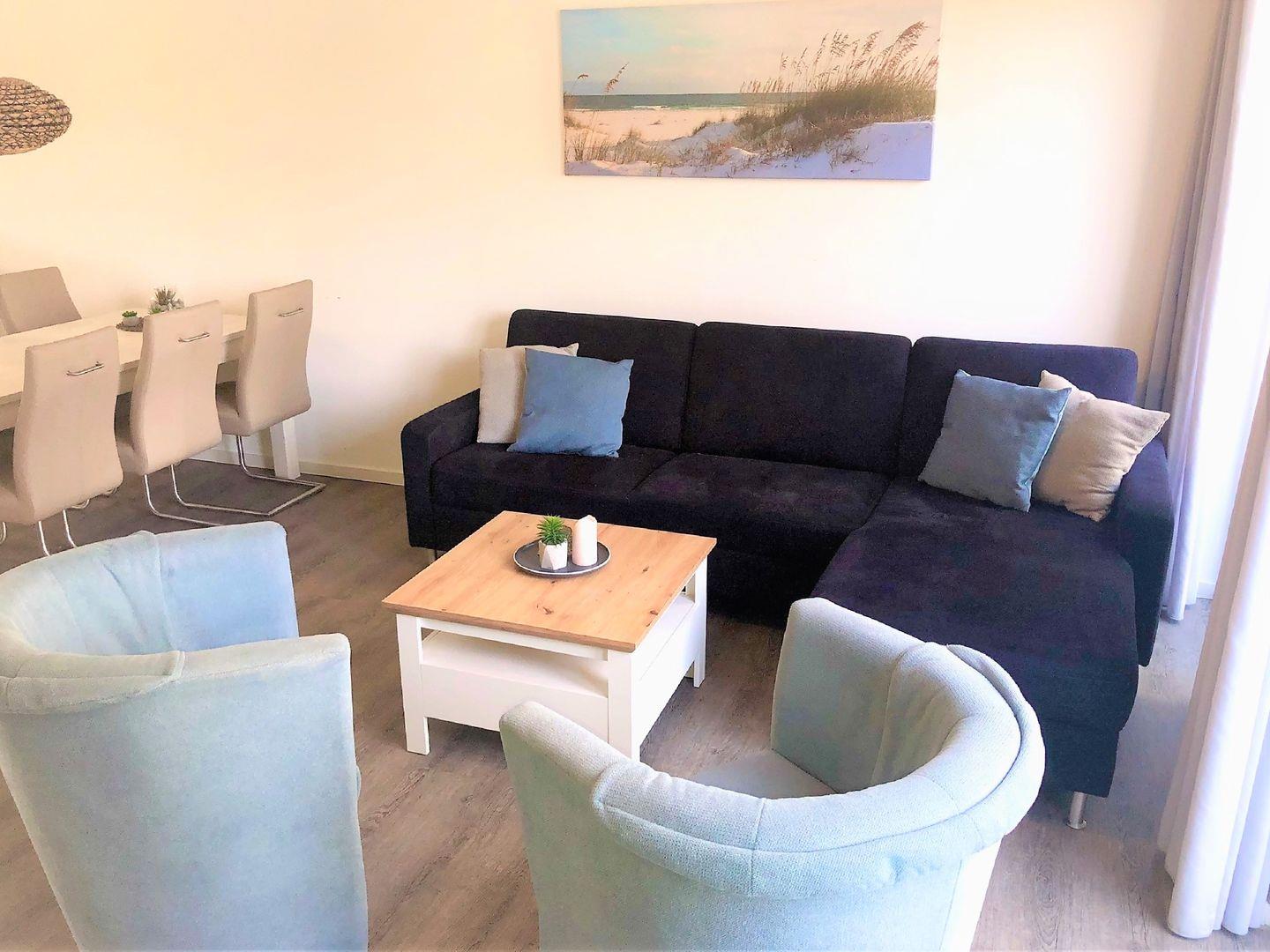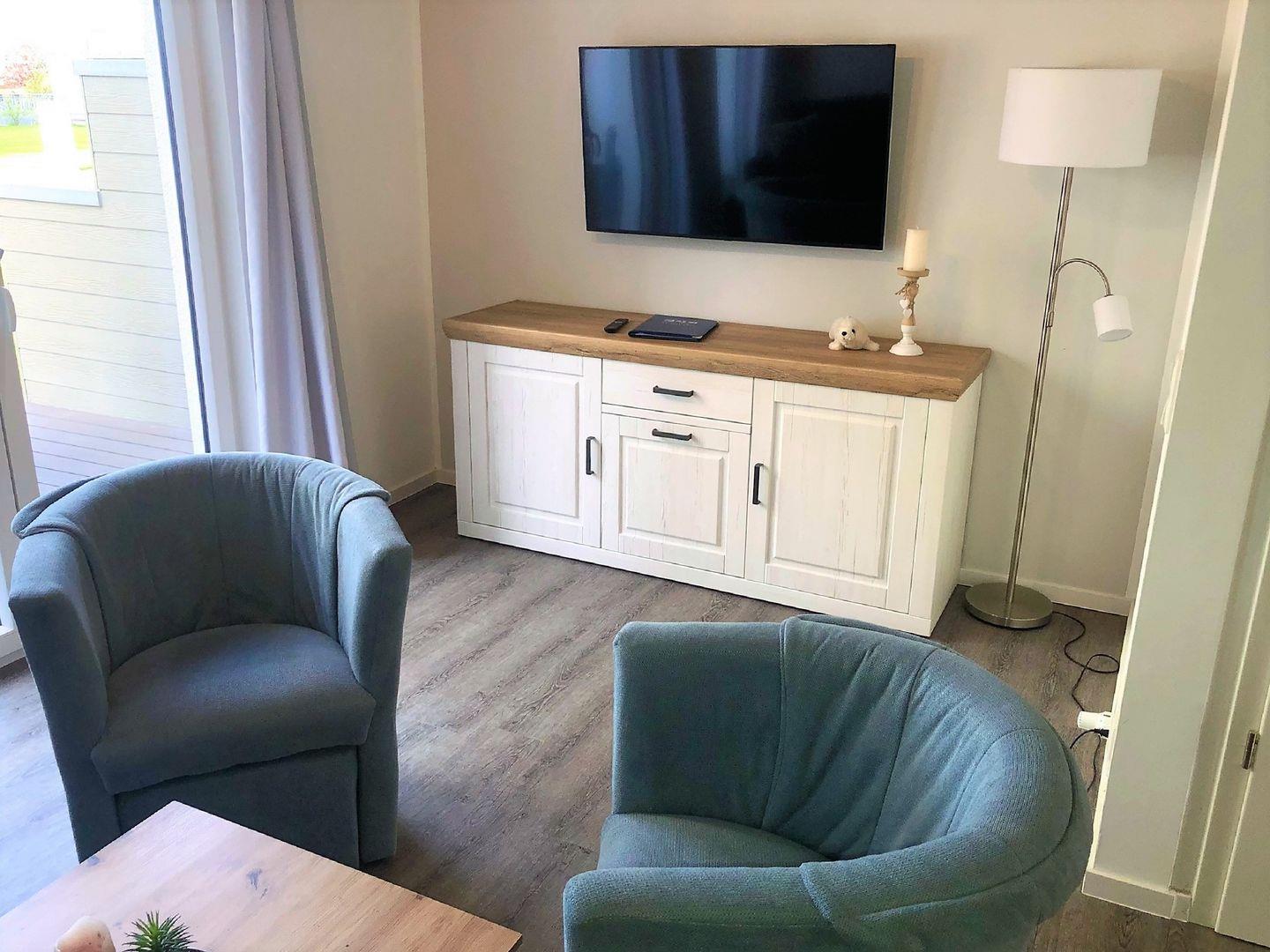 Im hinteren Bereich, zur Terrasse gelegen, steht eine gemütliche Sofaecke mit Fernseher zur Verfügung.