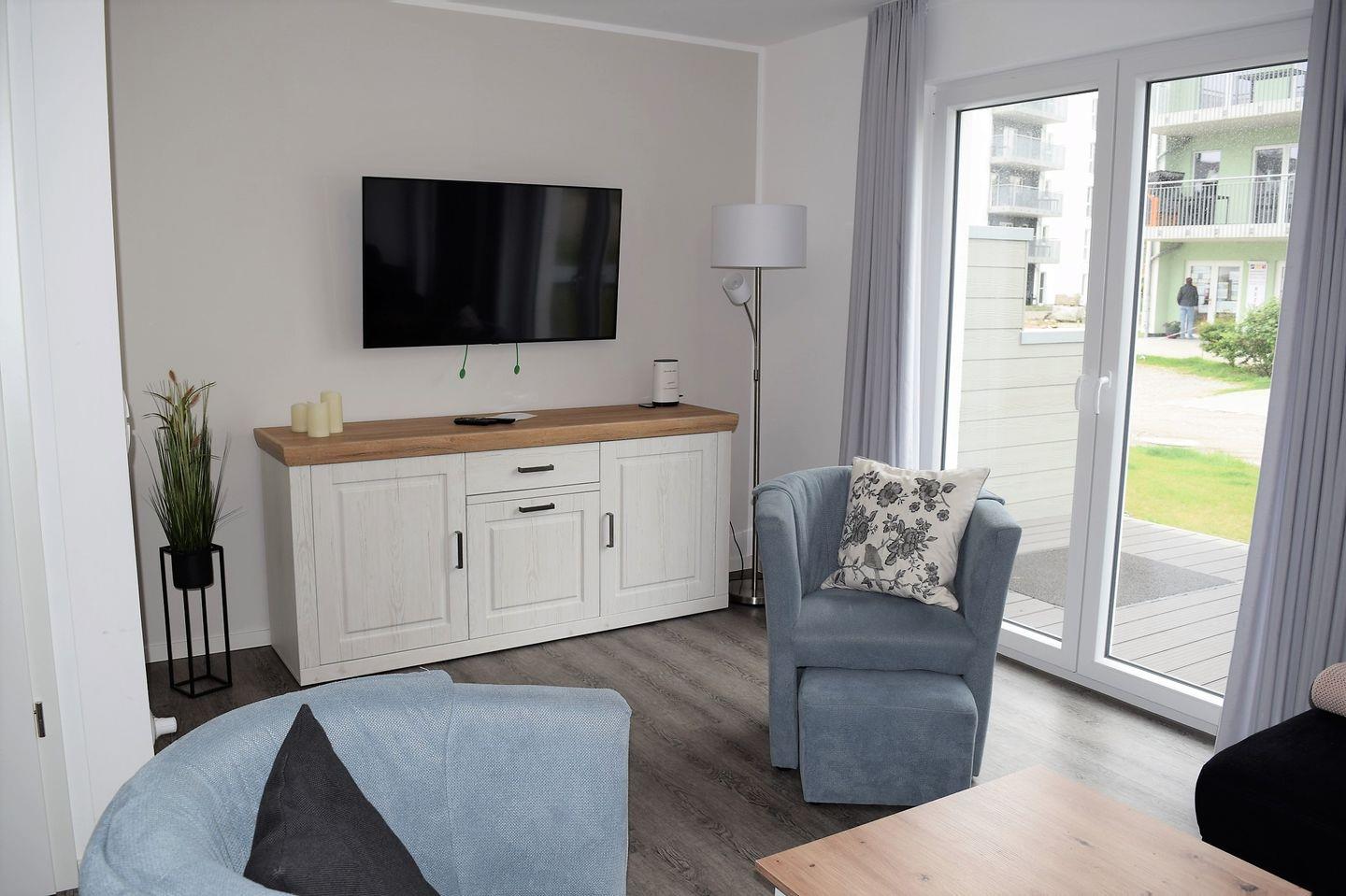 Im hinteren Bereich, zur Terrasse gelegen, steht eine gemütliche Sofaecke mit Fernseher zur Verfügung.