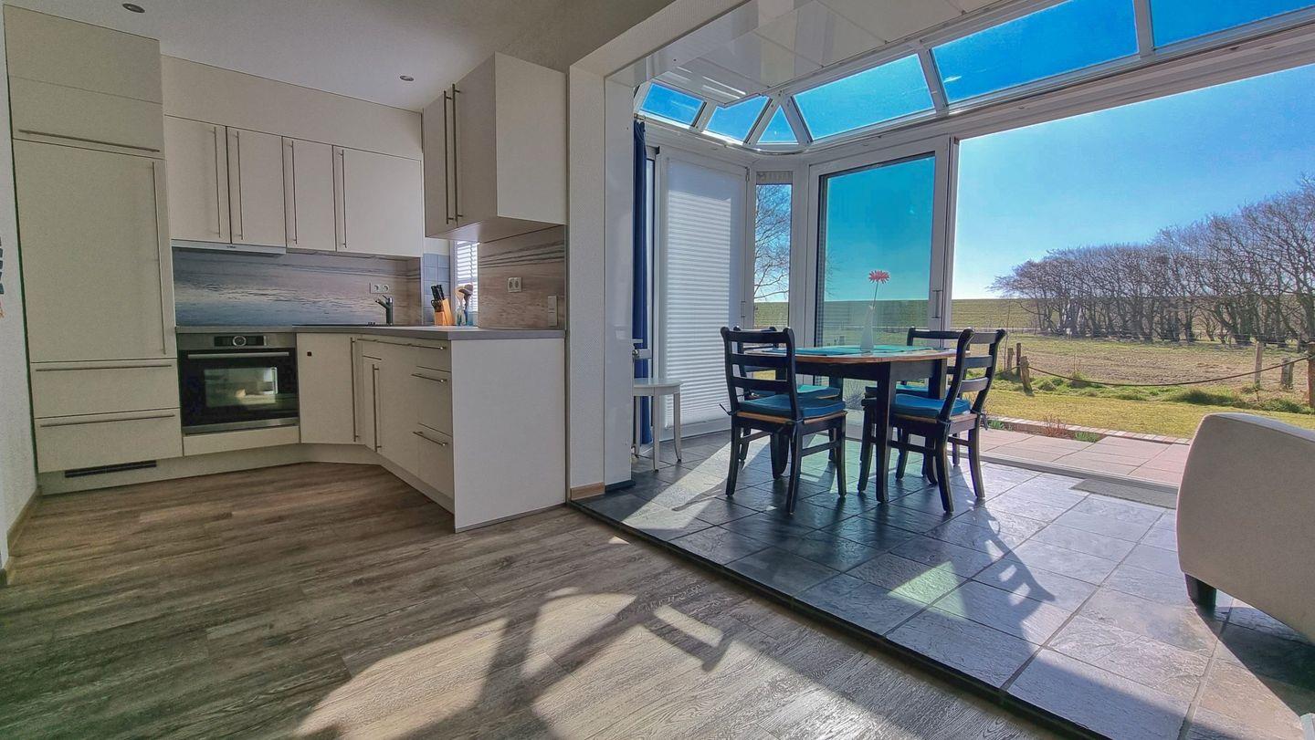Highlight ist der lichtdurchflutete Wintergarten mit Zugang zum Garten. Die offene Küche wurde im März 2022 erneuert.
