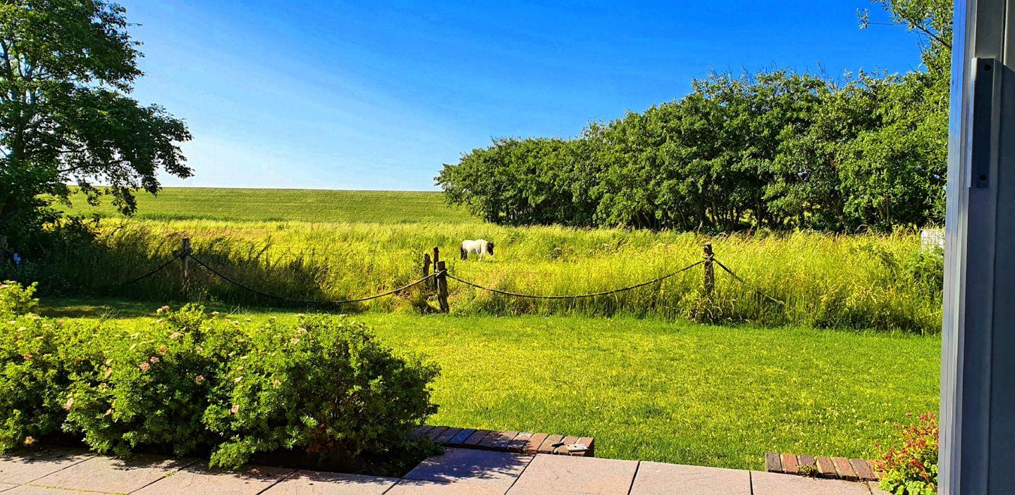 Diese FeWo befindet sich im EG, eines 4-Parteien Hauses mit Blick auf den Deich und Pferdewiesen.