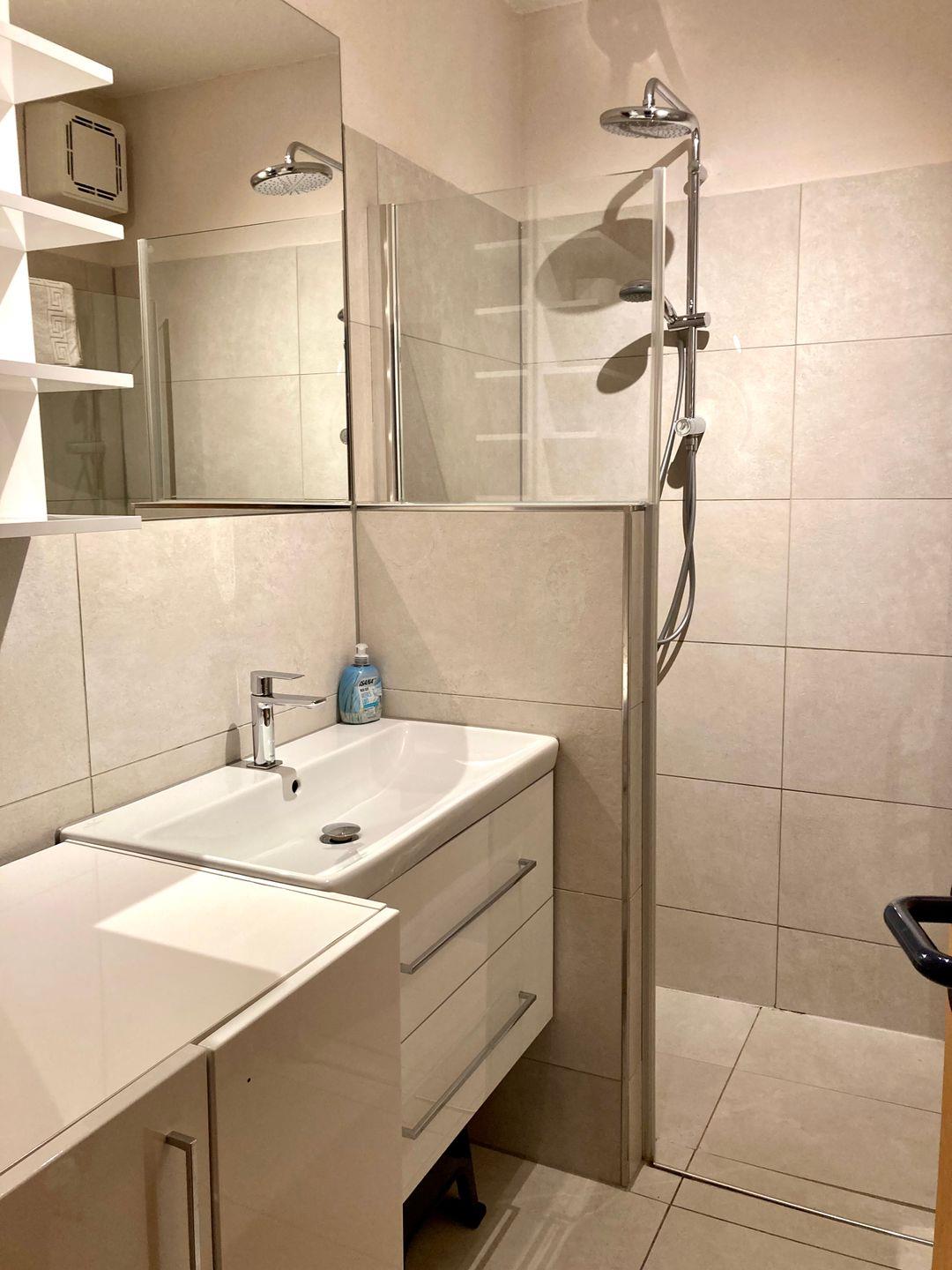 Hier erwartet Sie ein großzügiger Wohn-/Essbereich, der durch die großen Fenster schön hell ist. Das Badezimmer wurde erst neu gestaltet und bietet neben einer bodengleichen Dusche sogar eine Waschmaschine. Das WC befindet sich extra