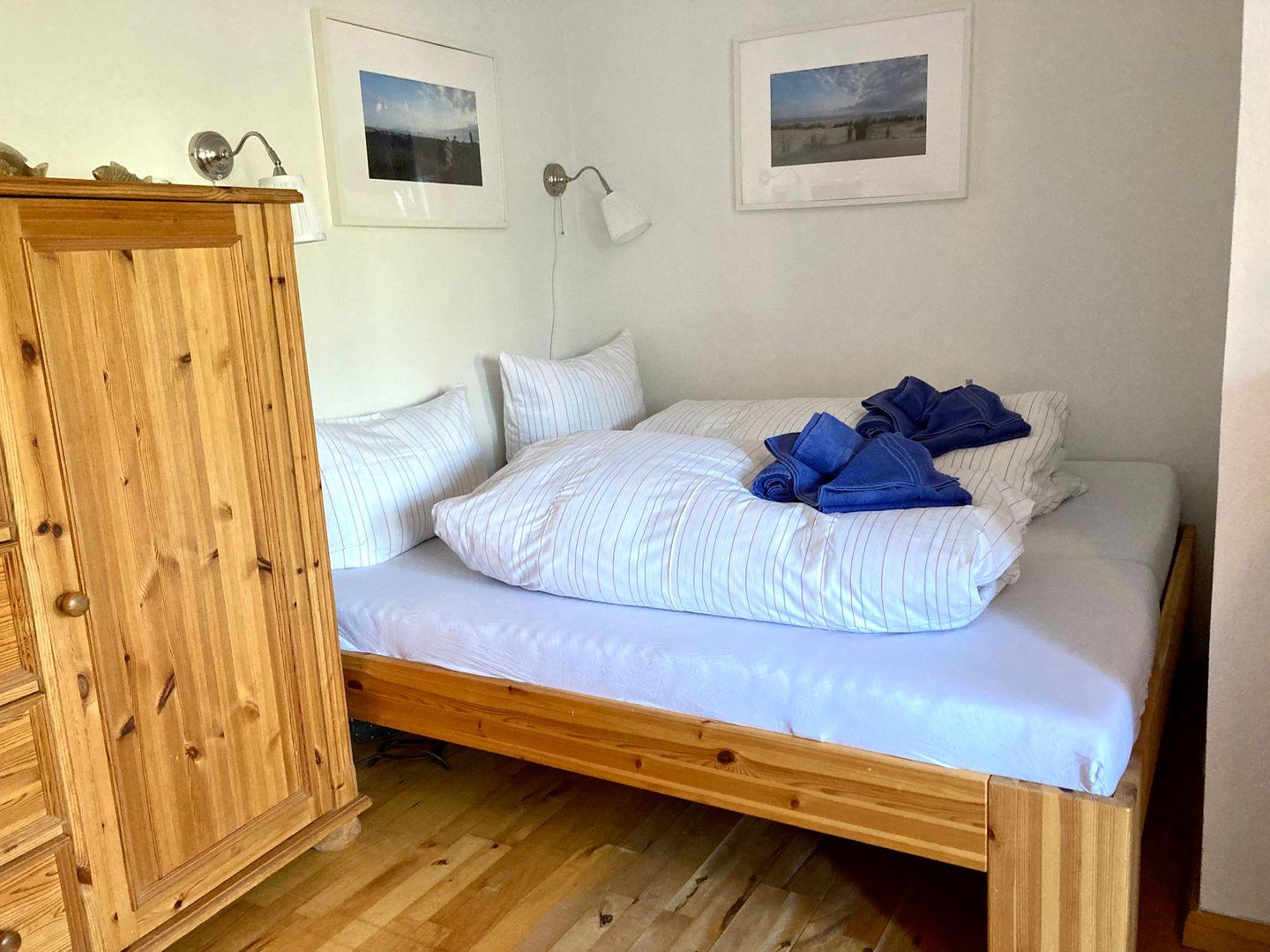 Im Schlafzimmer befindet sich dann 1 Doppelbett, sowie ein Einzelbett. Hier haben Sie somit genügend Ausweichmöglichkeiten zum Schlafen