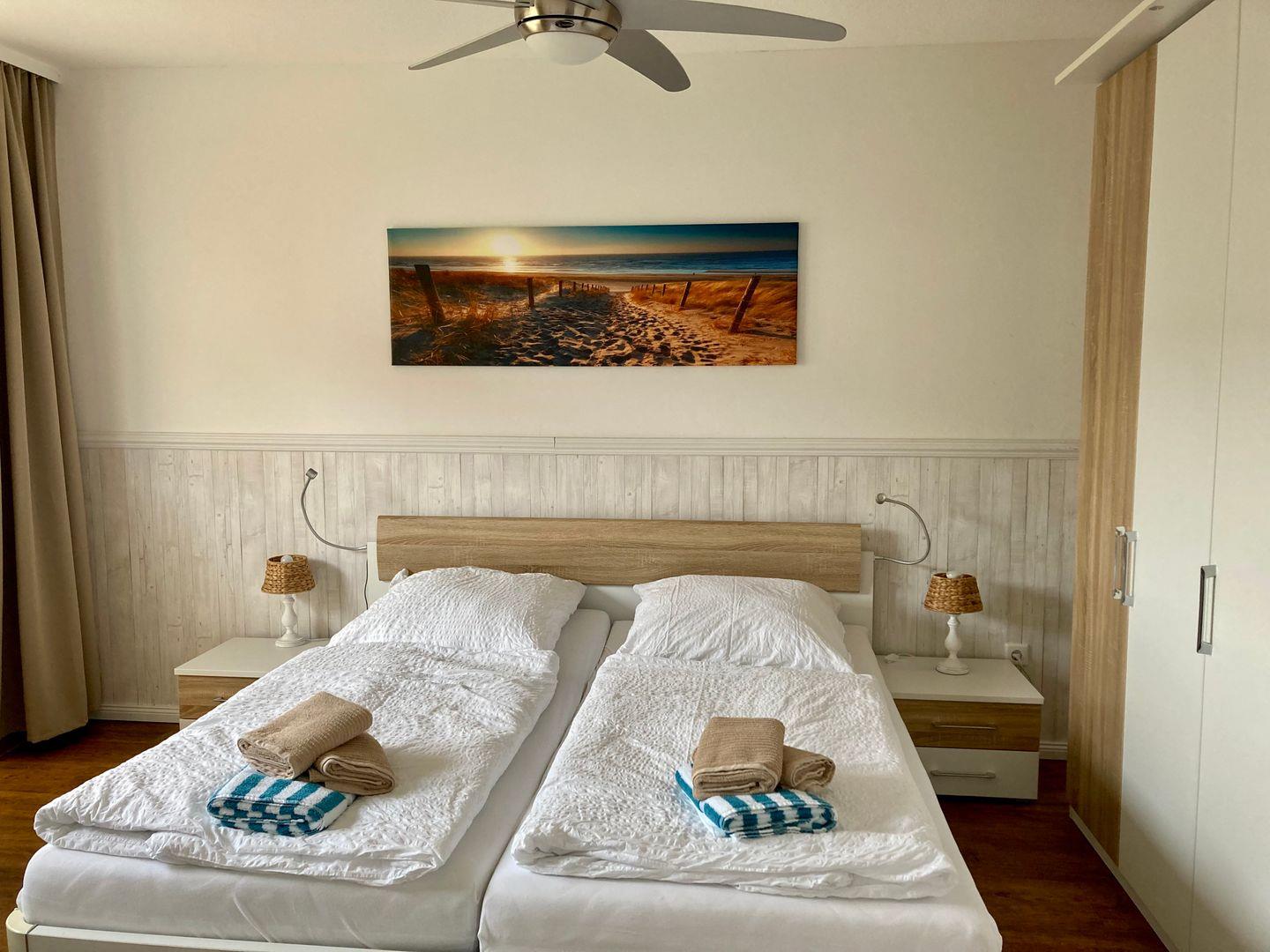 Wir haben uns viele Gedanken gemacht, wie wir Ihnen Ihre schönsten Tage im Jahr möglichst gemütlich gestalten können. Mit unserer neuen Einrichtung im maritimen Landhaus-Stil hoffen wir, dass Sie sich in unserer Wohnung willkommen und wohl fühlen. Z.B. auf dem bequemen Ess-Sofa oder im großen Doppelbett - ausgestattet mit neuen hochwertigen Matratzen.