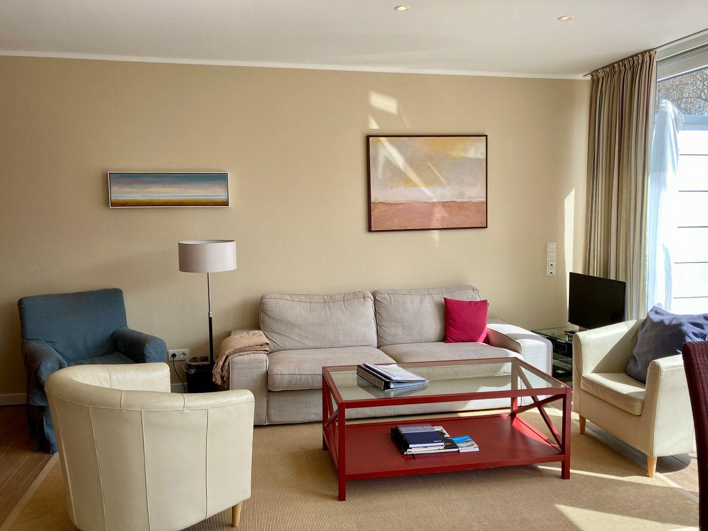 Diese Penthouse-Ferienwohnung befindet sich in zentraler Lage von Wangerooge mit herrlichem Blick nach Süden ins Grüne direkt auf den „Rosengarten“.