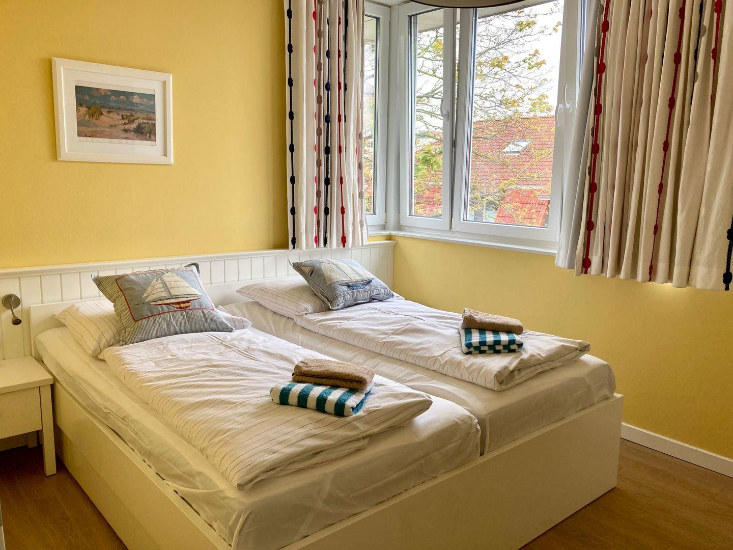 Zudem verfügt diese Traumwohnung über drei separate Schlafräume und bietet viel Platz für erholsame Stunden mit der ganzen Familie. In einem Schlafzimmer befindet sich ein Doppelbett. Im zweiten und dritten Schlafzimmer stehen jeweils zwei Einzelbetten. Alle Schlafzimmer verfügen über lichtundurchlässige Vorhänge, sodass sie nach Bedarf abgedunkelt werden können.