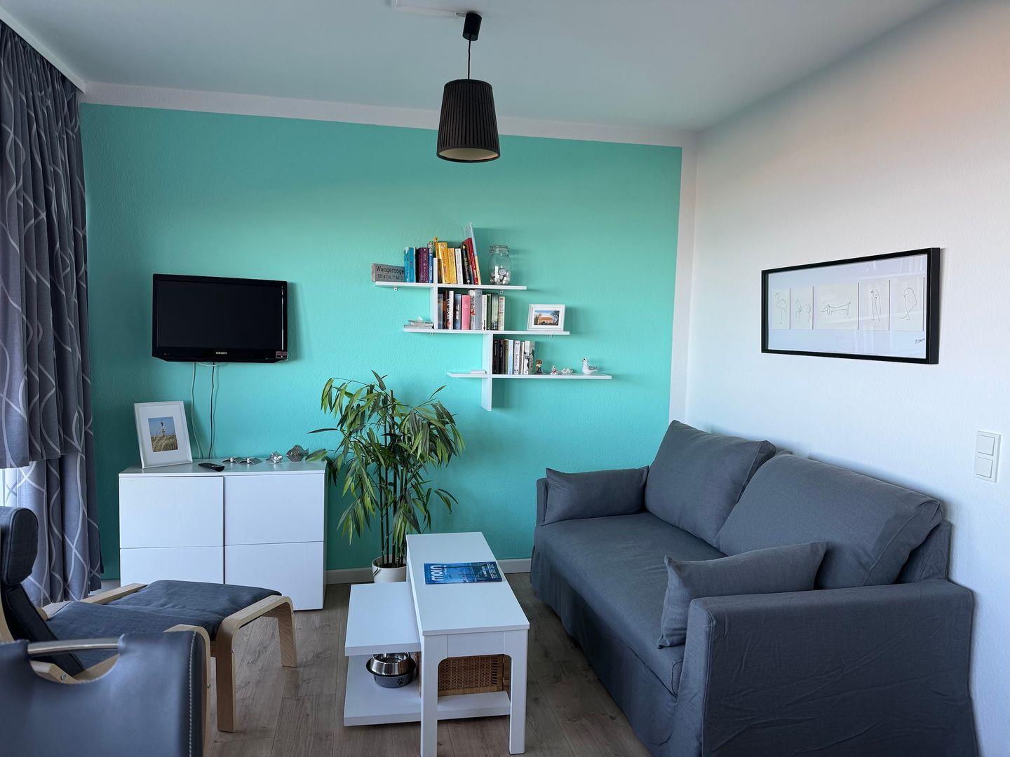 Wunderbar entspannen können Sie vor allem im Wohnraum der Ferienwohnung , der mit einem gemütlichen Sofa eingerichtet ist und einen traumhaften Blick aufs Meer erlaubt. Zusätzlichen Wohnkomfort bietet die gute technische Ausstattung mit Radio, TV und einem WLAN Hotspot.