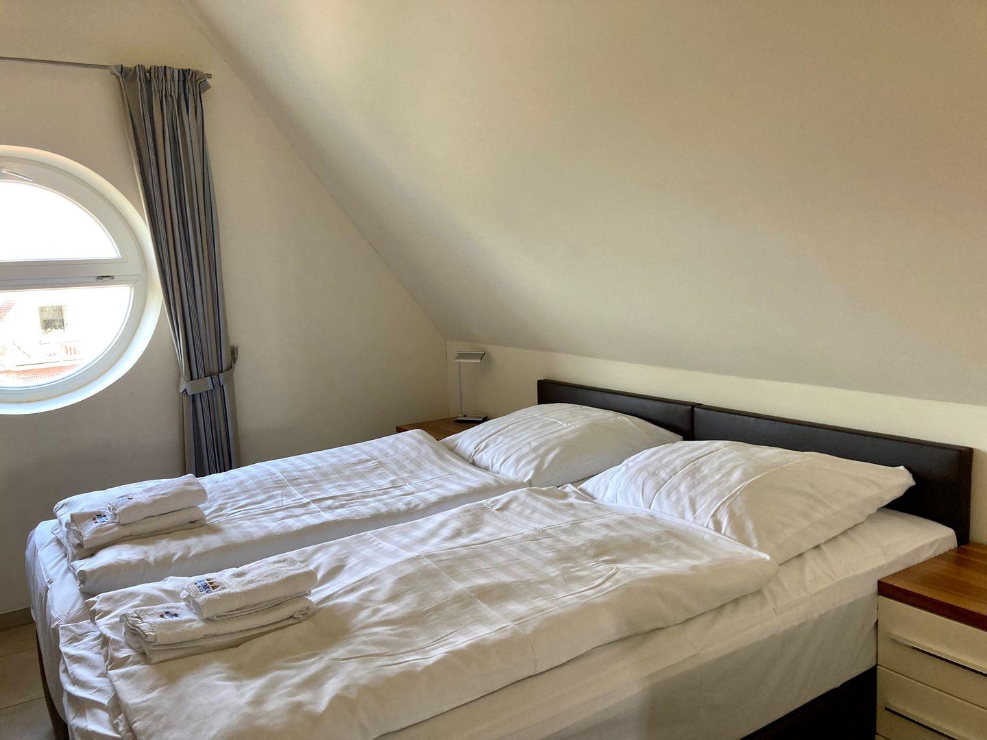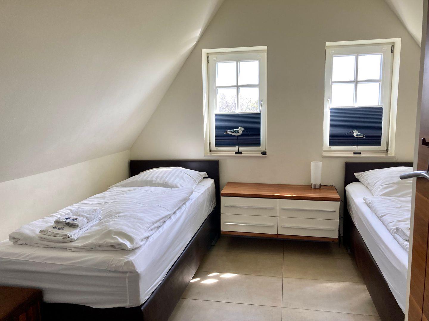 Die 108 qm erstrecken sich über 2 Etagen (OG und DG) die 4 Schlafzimmer und 2 Bäder bieten Ausweichmöglichkeiten. Die Einrichtung mit maßgefertigten Möbeln, Fußbodenheizung und die technische Ausstattung (wie z.B. 4 Flachbildfernseher, kostenfreies WLAN) sorgen für hohen Wohnkomfort.