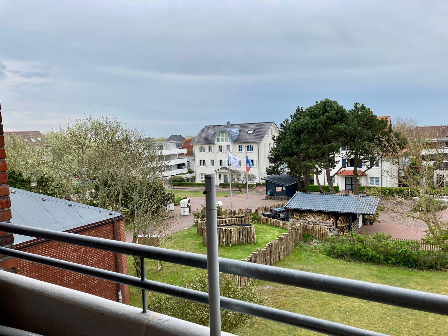 Das helle und großzügig geschnittene Wohnzimmer mit großem Sofa lädt zum Verweilen ein und der herrliche Südbalkon lässt sogar auf das Weltnaturerbe Wattenmeer blicken.
