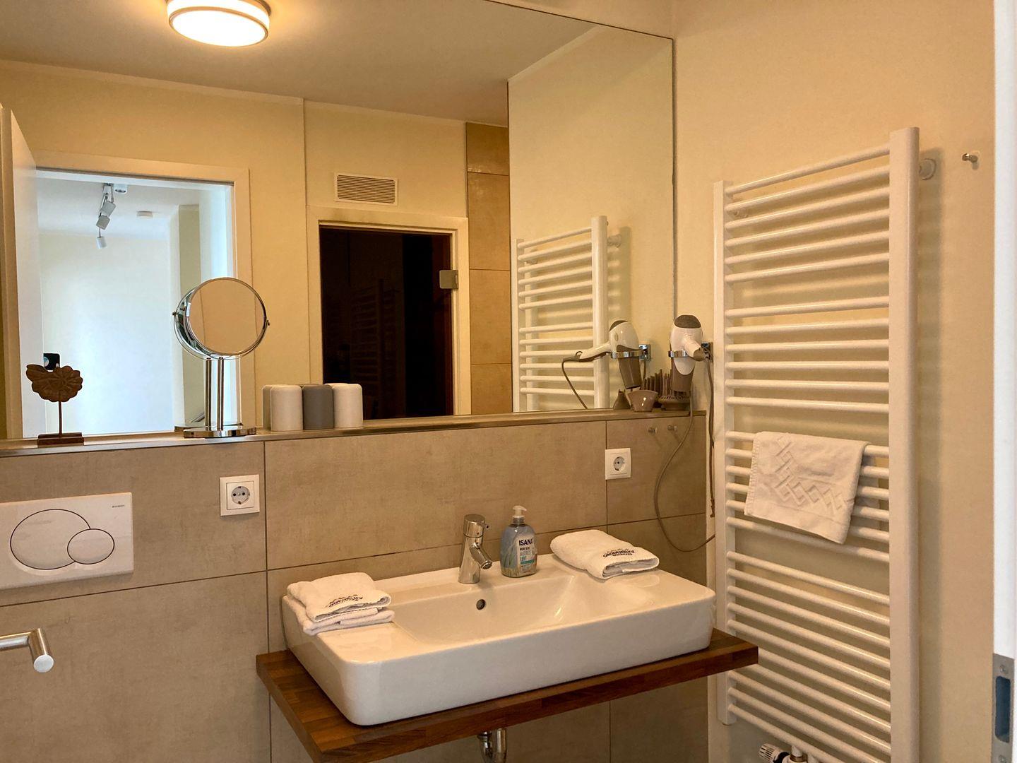Zwei komfortable Bäder sowie Gäste-WC bieten genügend Ausweichmöglichkeiten.