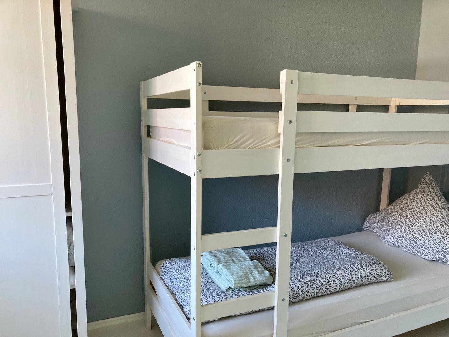 In der 1.Etage ist das helle Wohnzimmer mit angrenzendem "Kinderschlafzimmer"! Dieses verfügt über ein Etagenbett. Im Wohnzimmer befindet sich ein bequemes Sofa, Fernsehsessel und ein Flachbildfernseher mit Kabelanschluss. Auf dem Balkon (Süden) kann man in Ruhe lesen und den Blick übers Wattenmeer genießen!