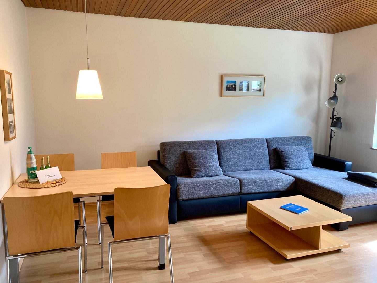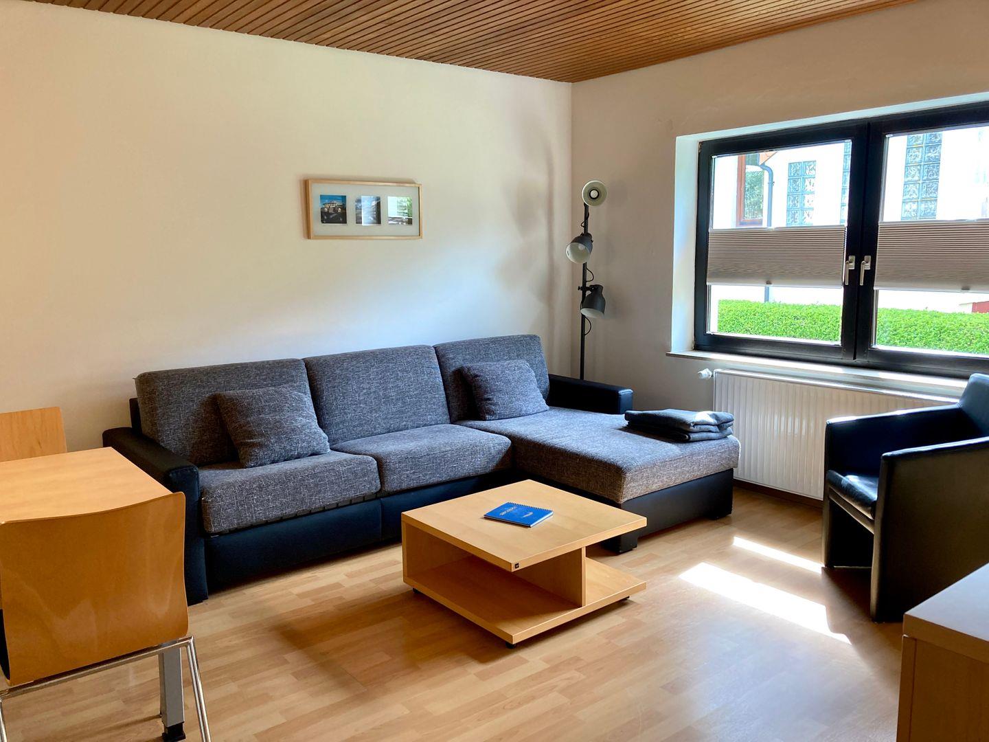 Die Küche ist mit allem ausgestattet, was man für eine bequeme Selbstverpflegung benötigt. Im Schlafzimmer befinden sich 2 Einzelbetten und weitere Schlafmöglichkeiten befinden sich im Wohnzimmer auf der komfortablen Schlafcouch. Das moderne Duschbad komplettiert diese tolle Erdgeschosswohnung.