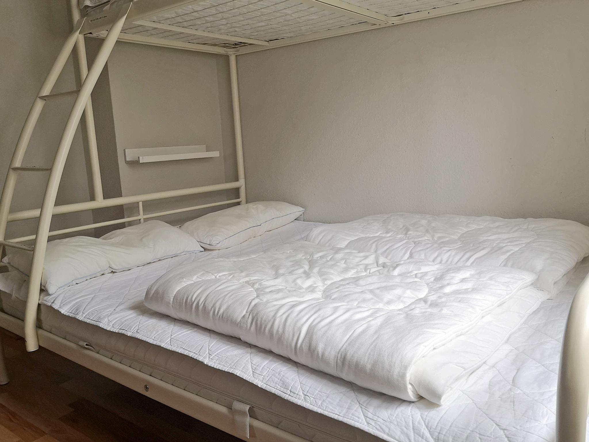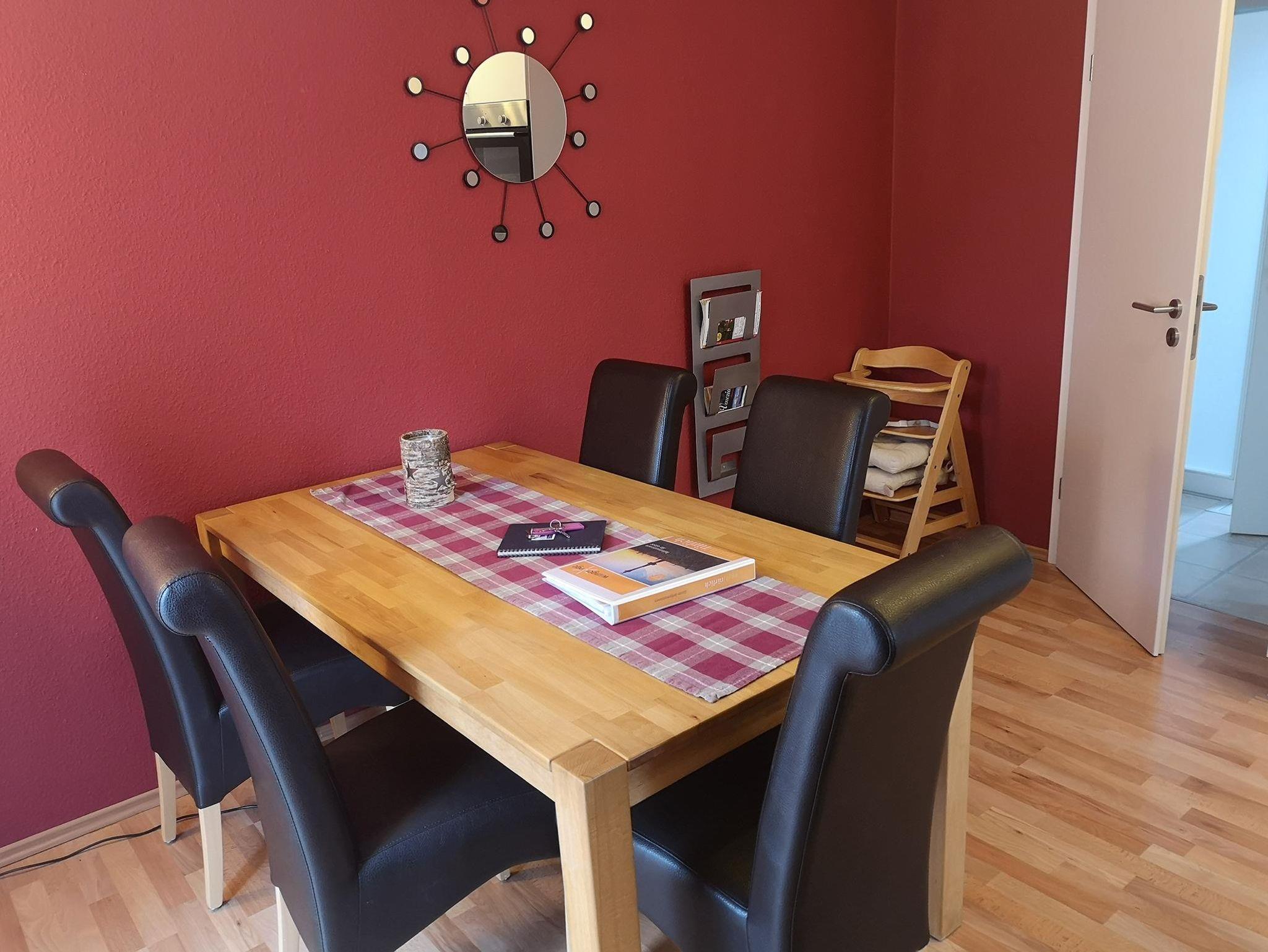 Moderne FeWo für bis zu 5 Personen, Balkon, 47 Flachbild-Sat-TV, Radio/CD-Player, 1 Schlafzimmer mit Doppelbett (180x200 cm), 1 Kinderzimmer mit stabilem Etagenbett (unten: 140x200 cm, oben: 90x200 cm). 2 Sessel zusätzlich vorhanden. Sehr großes Bad mit Wanne u. Dusche, Miele-Waschmaschine, Babybett und Hochstuhl, Wohn-Essküche mit Backofen und Geschirrspülmaschine, umfangreiche Küchenausstattung; Tresor; WLAN im Haus verfügbar; Freisitz mit Sitzmöbel für 6 Personen; Erstattung Wäschepakete.