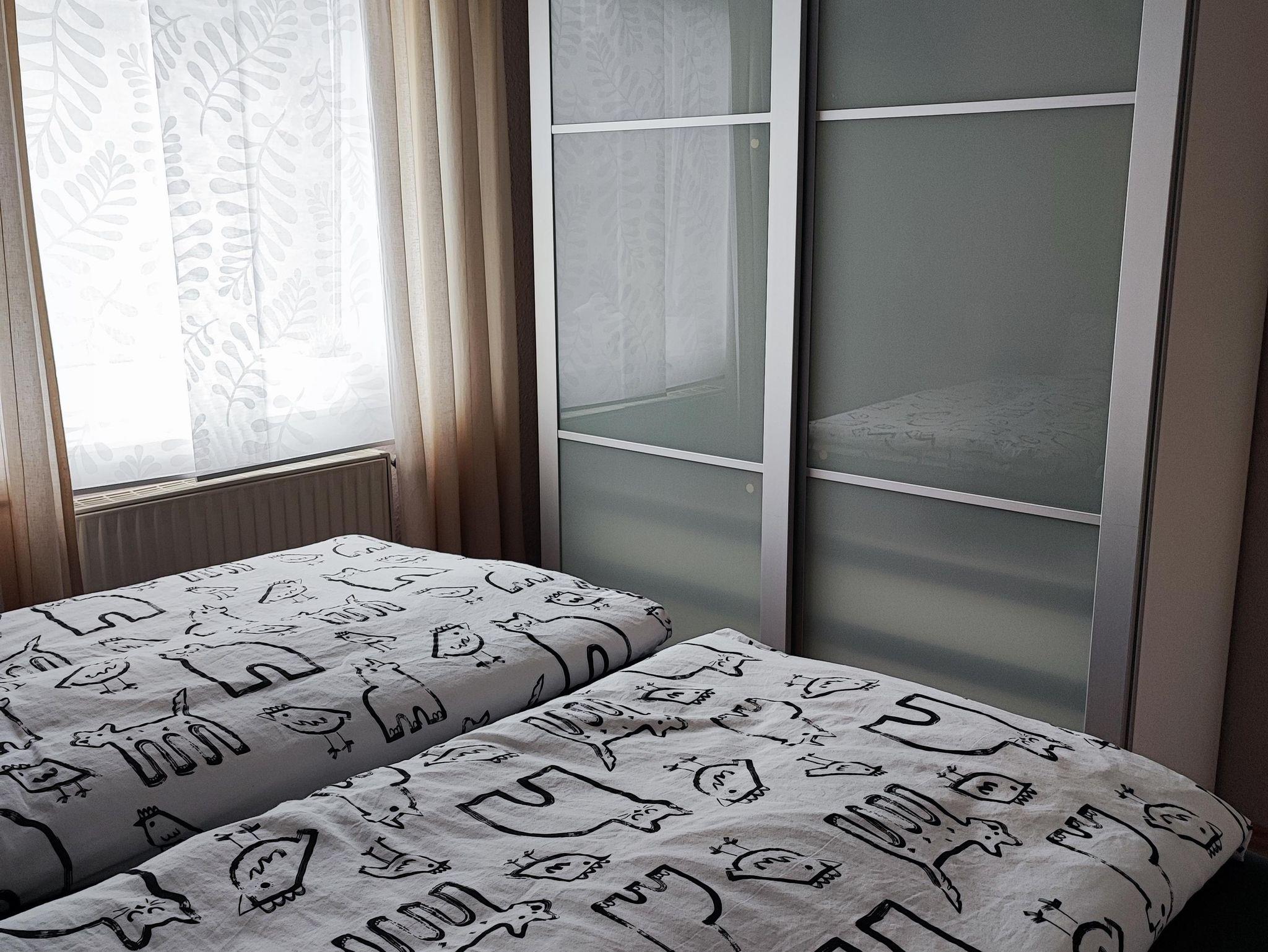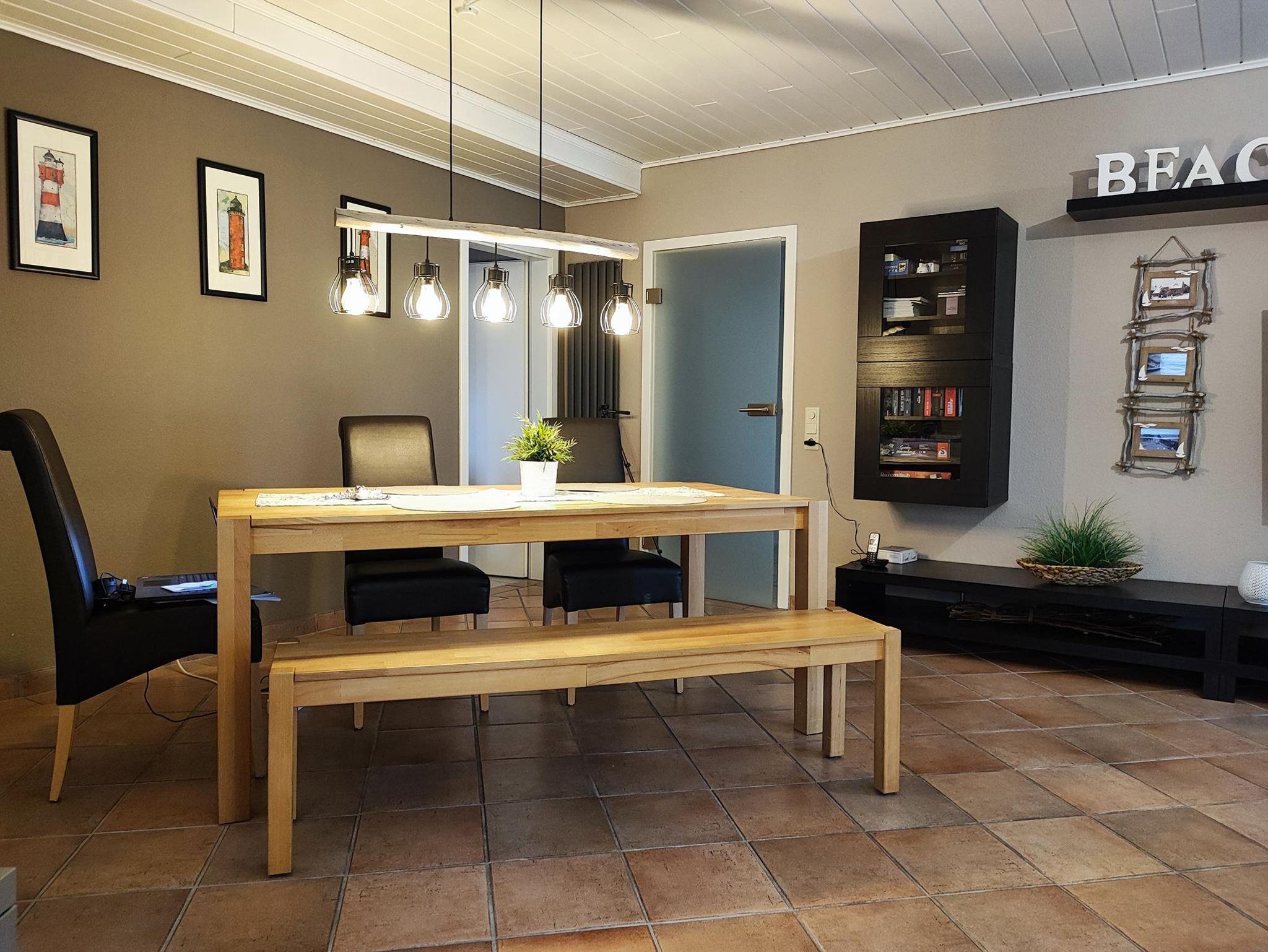 Moderne FeWo für bis zu 5 Personen. 47 Flachbild-Sat-TV, Radio/CD-Player, 1 Schlafzimmer Doppelbett (180x200 cm), 1 Kinderzimmer mit stabilem Etagenbett (unten: 140x200 cm, oben: 90x200 cm). Ledercouch, bodengleiches Duschbad mit faltbaren Glas-Seitenwänden, fahrbarer Bade-/WC-Stuhl auf Anfrage und Verfügbarkeit. Babybett und Hochstuhl, separate große Küche mit Backofen und Geschirrspülmaschine, umfangreiche Küchenausstattung; Tresor; Terrasse, Sitzmöbel f. 6 Personen; Erstausstattung Wäschepaket.