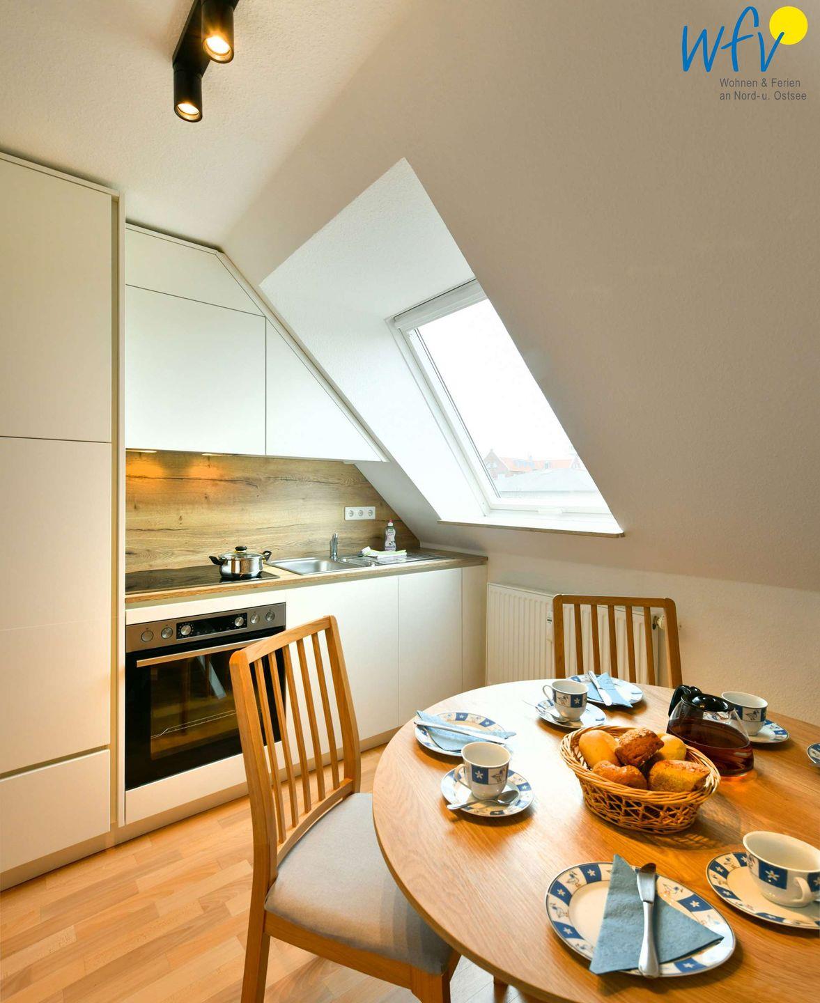 Die moderne Einbauküche - u.a. mit Herd und Backofen, Kühlschrank, Kaffeemaschine, Wasserkocher und Toaster - ermöglicht eine bequeme Selbstverpflegung. Auch ein Esstisch für gemeinsame Mahlzeiten mit der ganzen Familie ist vorhanden.