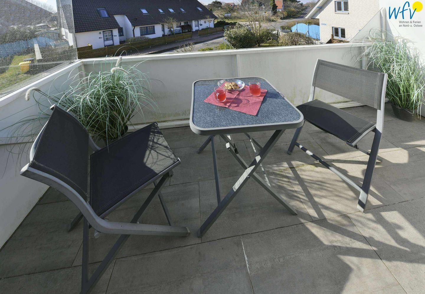 Sonne und frische Nordseeluft buchen Sie im "Sonnenhaus" inklusive! Auf dem schönen Balkon der Ferienwohnung können Sie tagsüber herrliche Stunden bei Südsonne genießen und beim Abendessen noch die letzten Sonnenstrahlen auskosten. Das sind unvergessliche Urlaubsmomente auf Wangerooge!