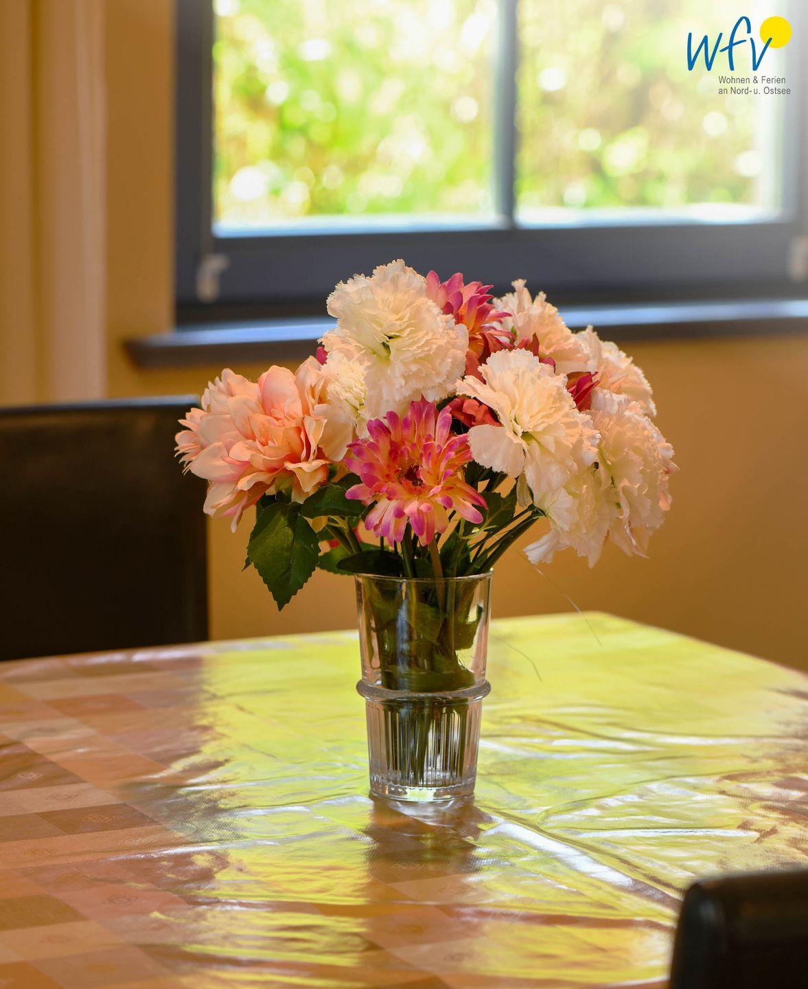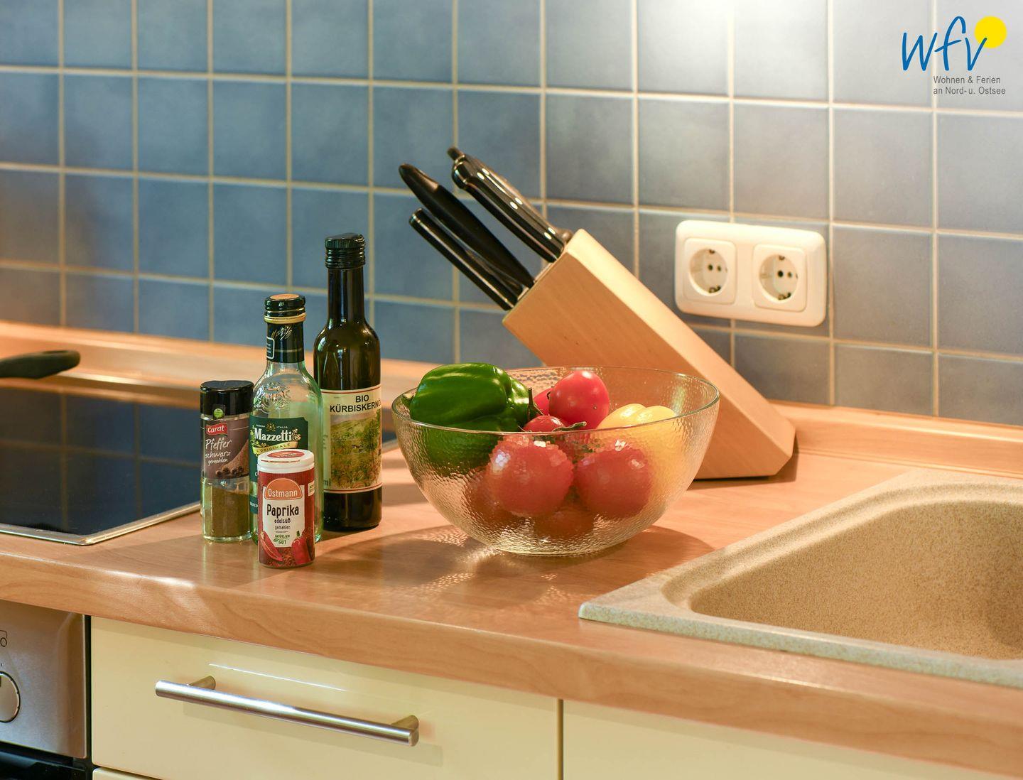 Für eine bequeme Selbstverpflegung in Ihrem Urlaub verfügt die Küche u.a. über einen Ceranherd mit Backofen, einen Kühlschrank mit Gefrierfach und einen Geschirrspüler. Kaffeemaschine, Wasserkocher und Toaster sind selbstverständlich ebenfalls vorhanden. Ein hübscher Esstisch lädt bereits morgens zum leckeren Ferienfrühstück ein. Da bekommt man direkt Lust, einen ereignisreichen Ferientag auf Wangerooge zu planen!