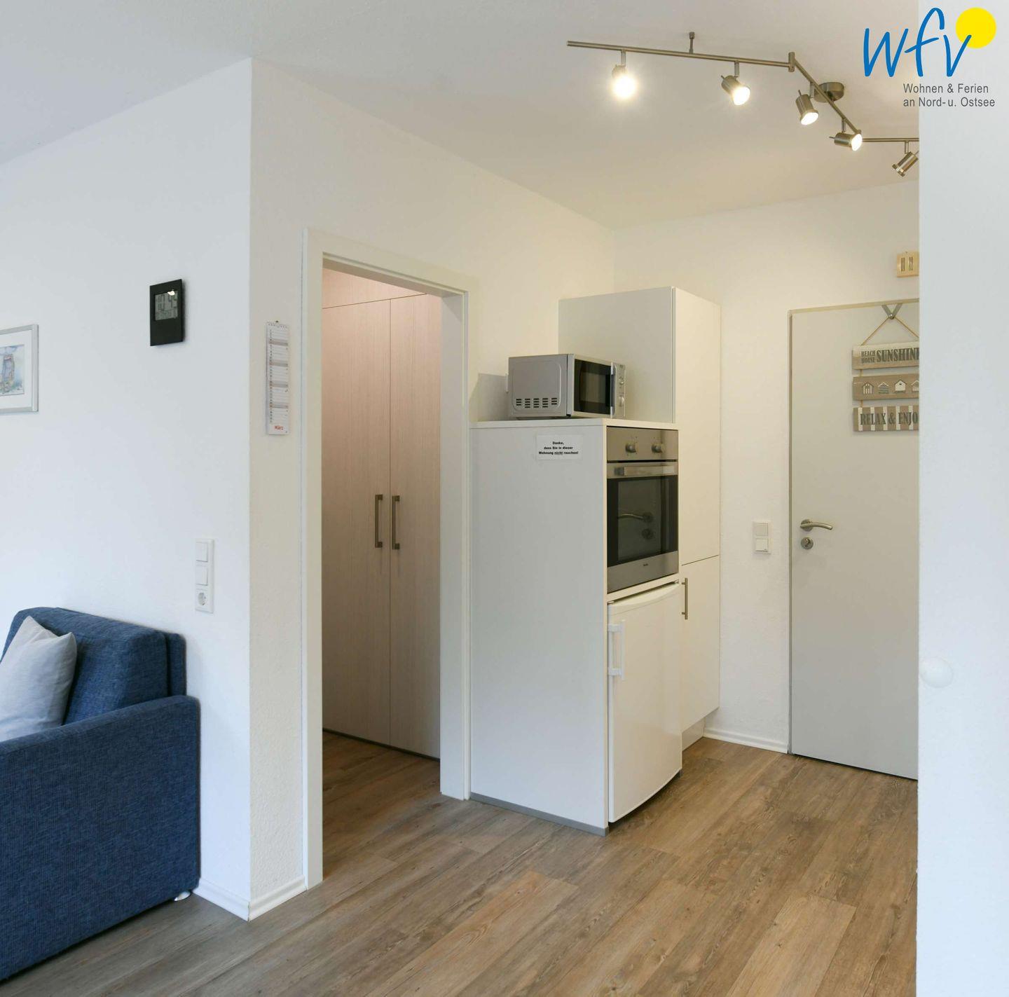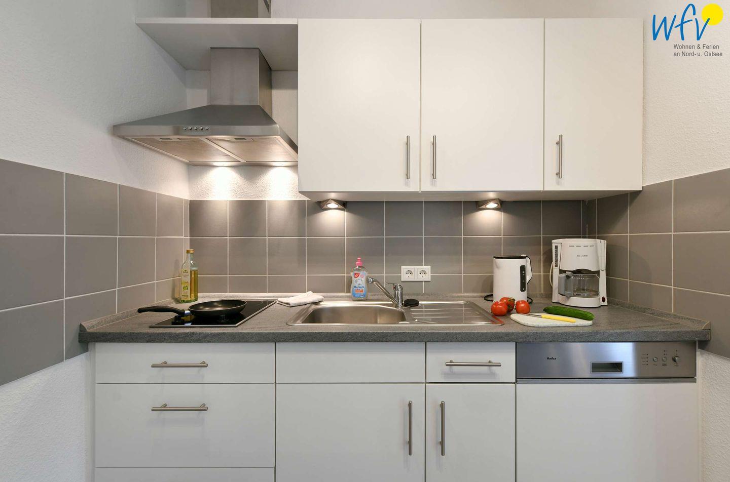 Für die bequeme Selbstverpflegung erwartet Sie eine komplett ausgestattete Küche mit Glaskeramik-Kochfeld, Backofen, Kühlschrank, Spülmaschine, Mikrowelle, Kaffeemaschine, Wasserkocher, Toaster und Eierkocher.