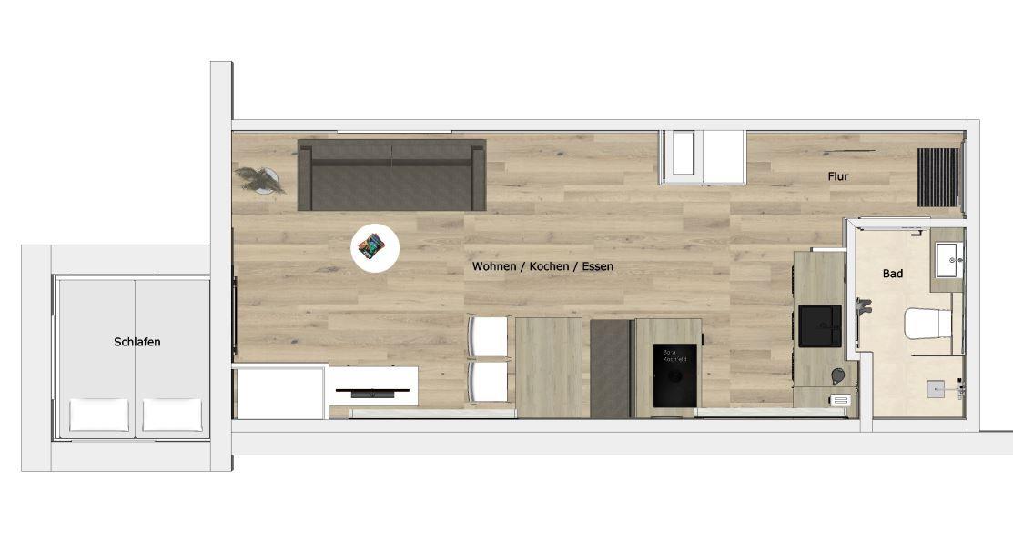 Diese Ferienwohnung ist ideal für den Urlaub zu zweit. Auf 30 m² Wohnfläche erwartet Sie ein geräumiger Wohnraum mit integrierter Küche, Couchecke, TV und Essplatz sowie eine Schlafnische, eine Garderobe mit Ganzkörperspiegel und ein Duschbad. Helle Farben, stilvolles Mobiliar und ausgewählte Accessoires machen die Ferienwohnung zu einer Wohlfühloase für zwei Personen.
