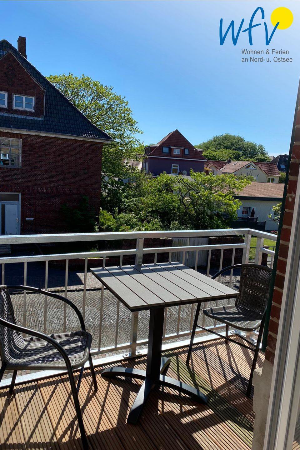 Wohltuende Nordseeluft genießen Sie auf dem Balkon der Ferienwohnung. Hier in Ruhe ein gutes Buch lesen, zusammensitzen oder einfach nur die Seele baumeln lassen ist ein herrliches Urlaubsgefühl!