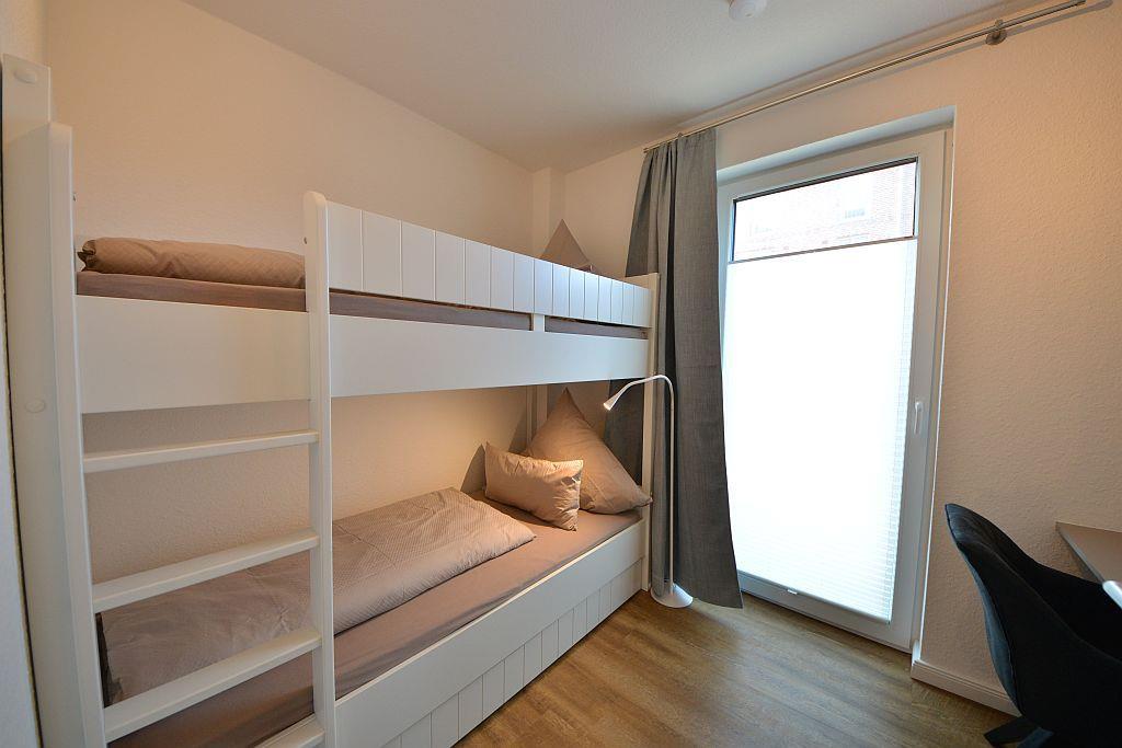 Für die Nacht bietet Ihnen die Wohnung zwei komfortable Schlafzimmer. In dem großen Schlafzimmer für die Erwachsenen befindet sich ein komfortables Boxspringbett in Überlänge (180 x 210 cm) von Swiss-Sense. In dem Kinderschlafzimmer steht ein gemütliches Etagenbett für die Kleinen. Bei Bedarf können ein Babybett und ein Hochstuhl dazu gestellt werden.