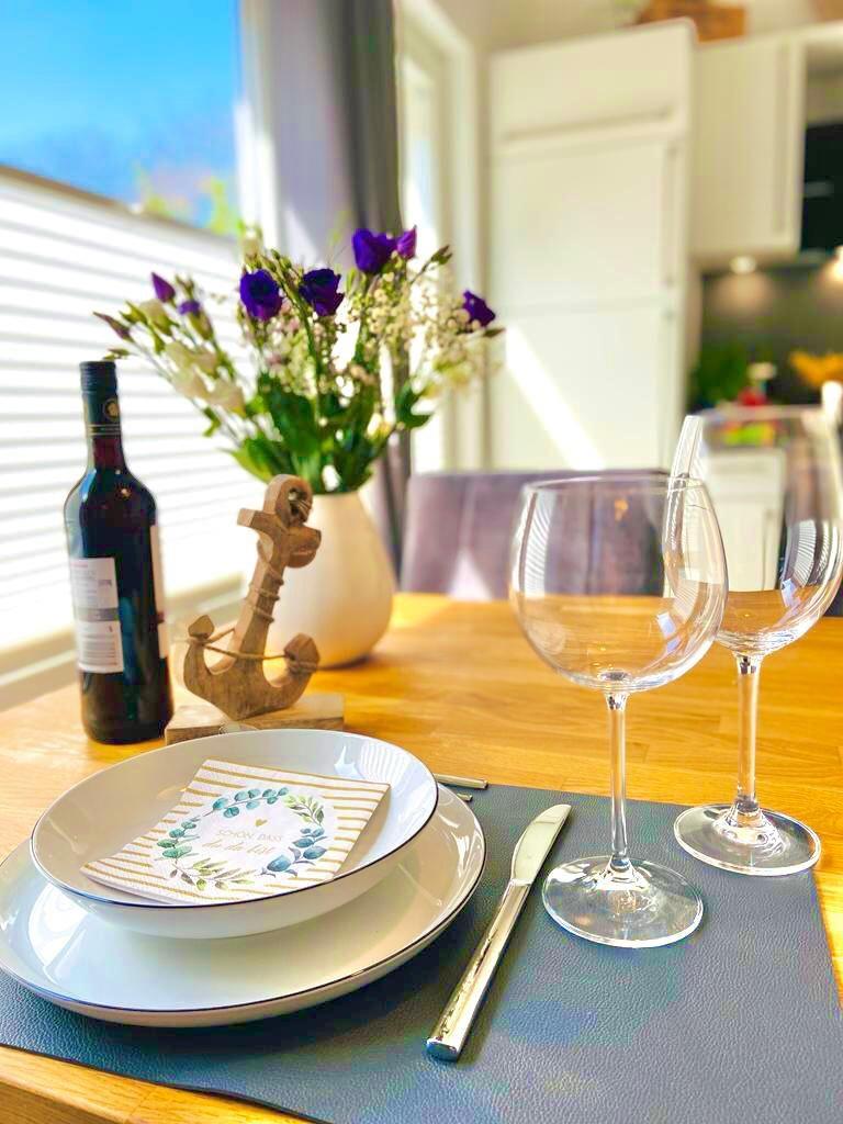 Die große Einbauküche bietet Ihnen sämtlichen Luxus. Es stehen Ihnen unter anderem ein Kaffeevollautomat, eine Kaffeemaschine, ein Backofen, Geschirrspüler und Gefrierschrank zur Verfügung. Direkt neben der Küchenzeile können bis zu 4 Personen am Esstisch Platz nehmen.
