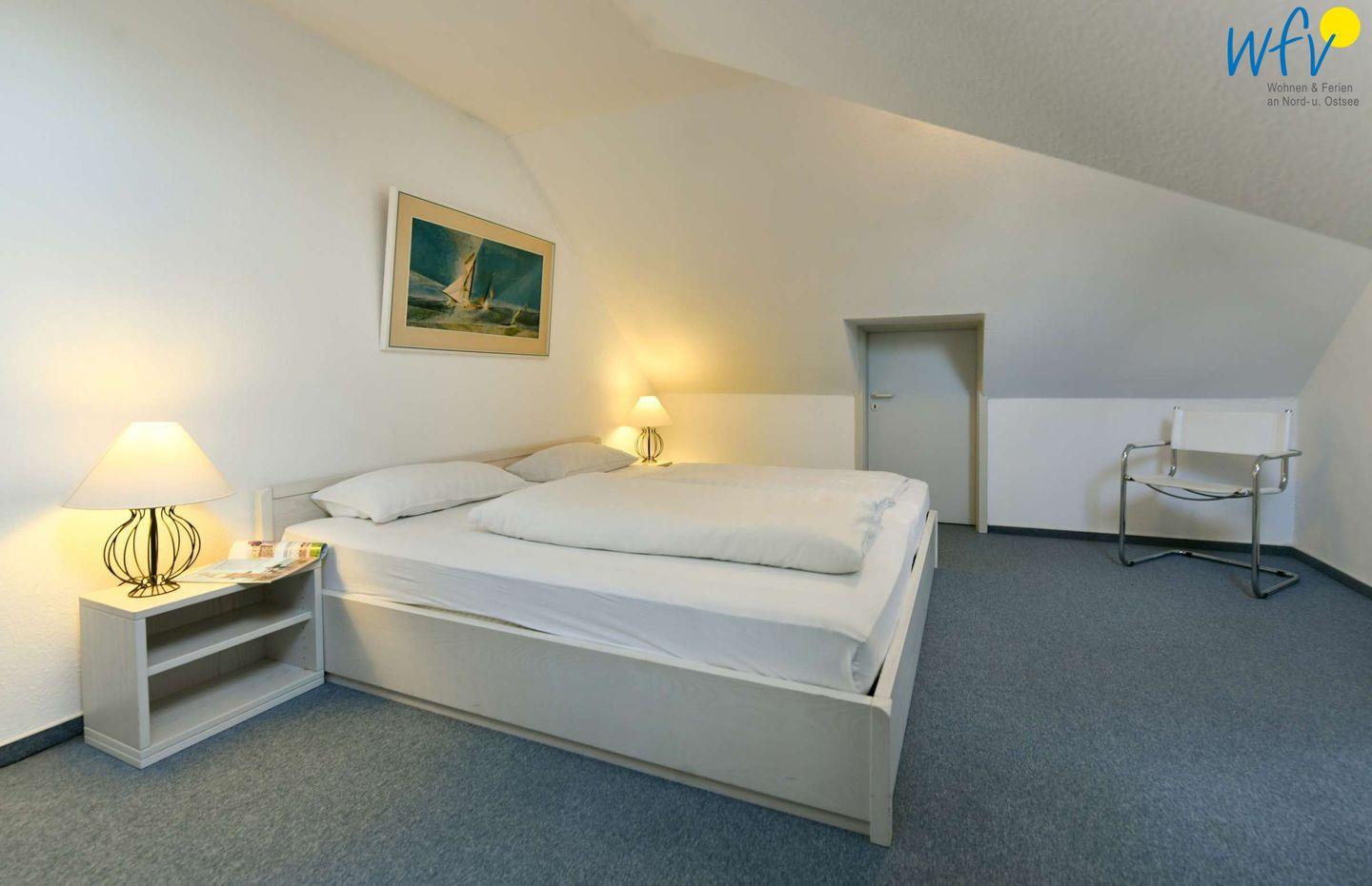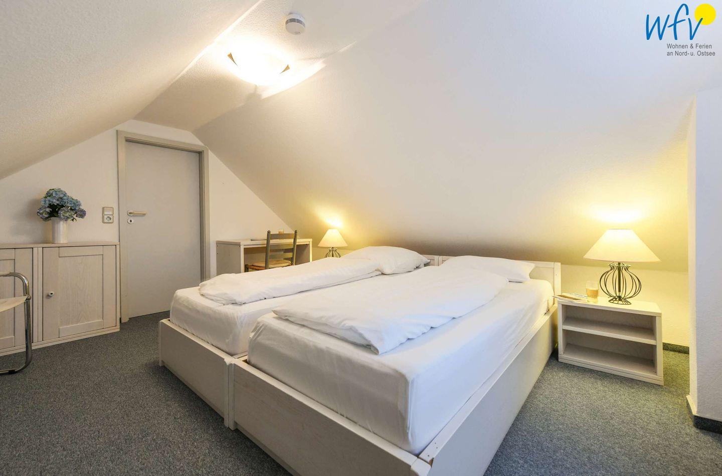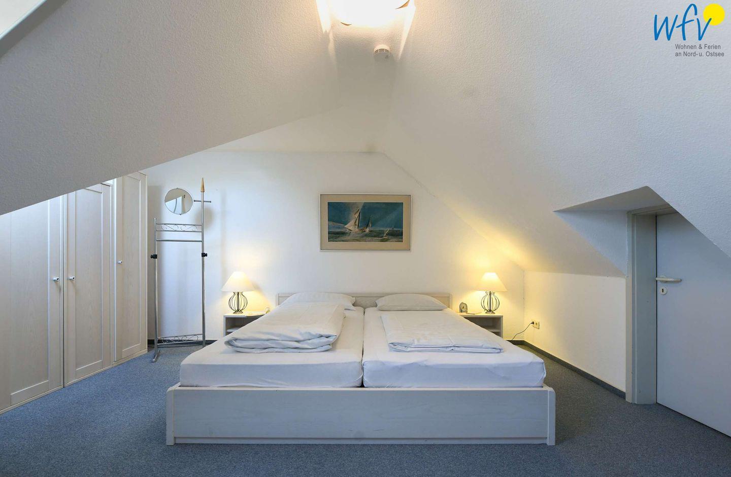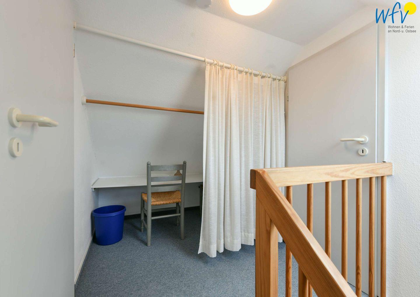 Drei separate Schlafzimmer ermöglichen Ihnen bei einem Urlaub mit mehreren Personen sehr angenehme Aufteilungsmöglichkeiten. Im unteren Bereich befindet sich ein Kinderschlafzimmer mit Etagenbett und kleinem Schreibtisch, im oberen Wohnbereich liegen zwei weitere Schlafzimmer - jeweils mit Doppelbett.