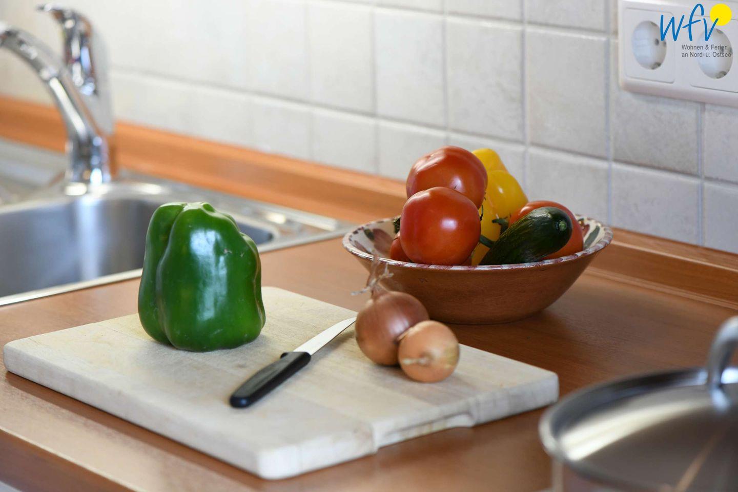 Für warme Frühstückseier, den Snack zwischendurch oder das leckere Abendessen steht Ihnen in der Ferienwohnung eine gut und praktisch ausgestattete separate Küche zur Verfügung. U.a. mit einem 4-Plattenherd, einem Backofen, einer Mikrowelle und einer Spülmaschine.