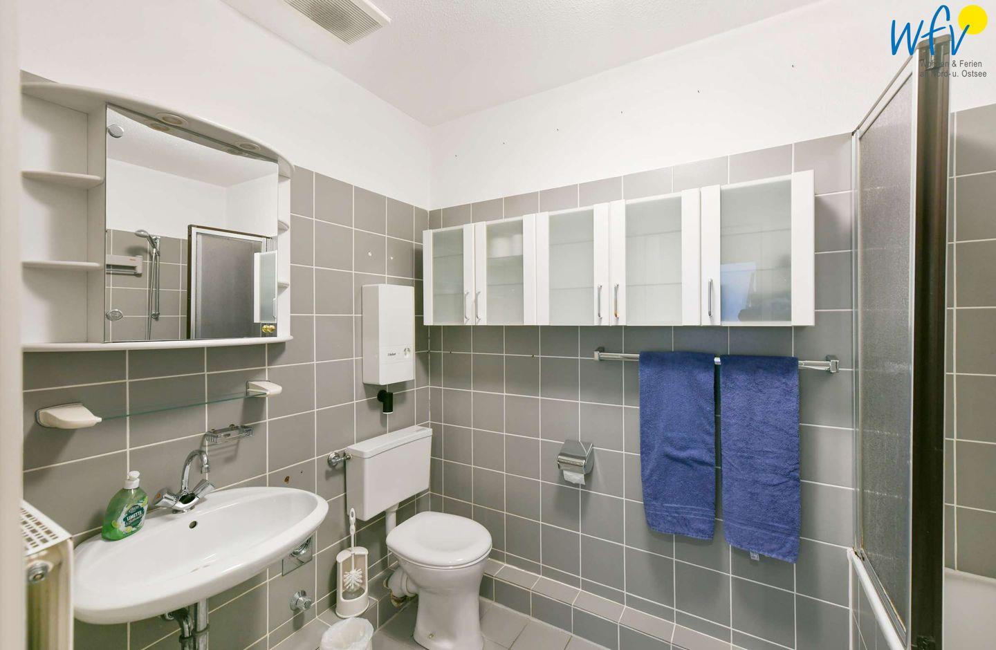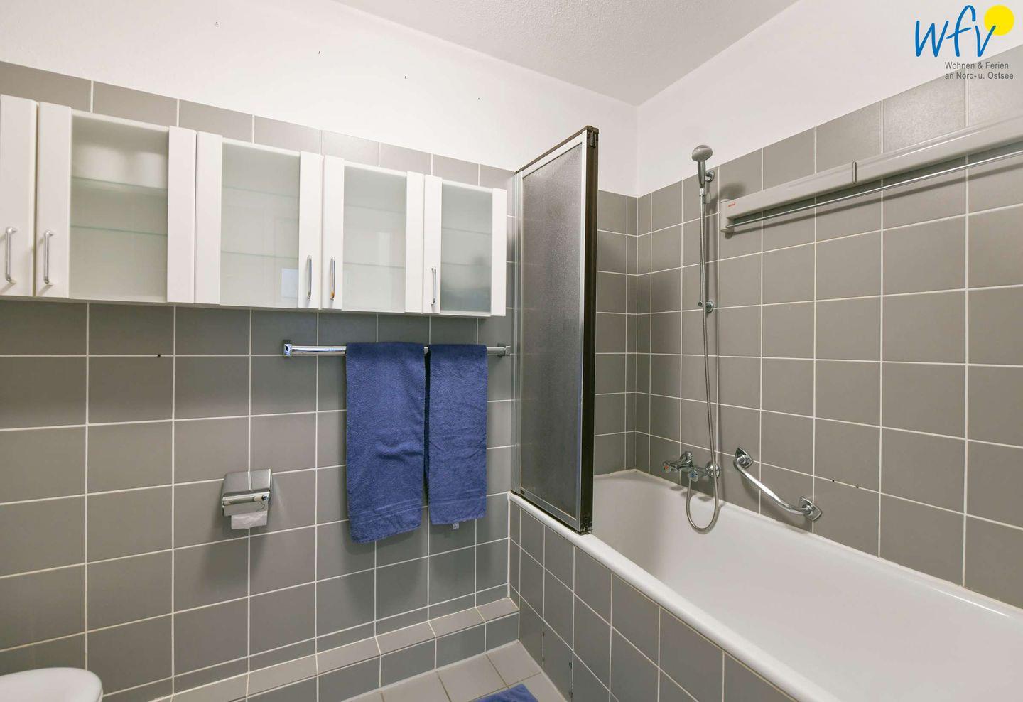 Das Badezimmer ist mit einer Duschbadewanne ausgestattet. Perfekt, um nach dem ausgiebigen Strandspaziergang im Schaumbad zu relaxen!
