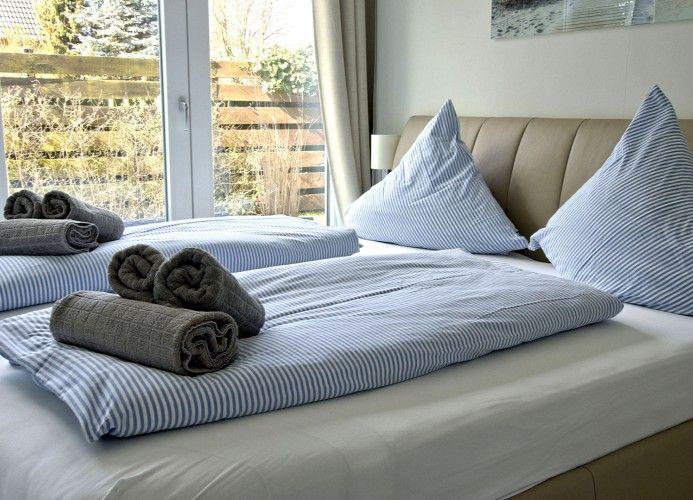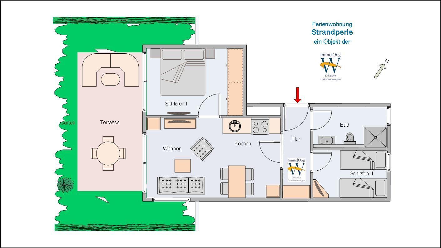 Ein im Jahr 2017 in besonderer Architektur neu erbautes Domizil im ruhigen Dorfkern, in Sackgassenlage, abseits des Trubels. Den feinsandigen Badestrand und das Zentrum von Wangerooge erreichen Sie nach wenigen Gehminuten. Wir bieten Ihnen die sehr hochwertig ausgestattete Ferienwohnung "Strandperle" an, die sich im Erdgeschoss befindet und über eine großzügige Sonnenterrasse mit Essgelegenheit und Lounge Ecke verfügt, umgeben vom großzügigen Garten. Zwei separate Schlafzimmer, eines mit Doppelbett, eines mit zwei Einzelbetten, bieten hohen Schlafkomfort für bis zu vier Erwachsene und ein Kleinkind. Die im modernen, maritimen Wohnstil absolut neu und gemütlich eingerichtete "Strandperle" lässt nahezu keine Wünsche offen und wird auch Ihren Geschmack treffen. Bodentiefe Fenster lassen den Wohn- und Schlafraum mit Sonnenlicht durchfluten. Hochwertige, allergikerfreundliche Materialien (Parkett- und Fliesenböden), sowie eine umfassende Ausstattung, bieten ideale Voraussetzungen, um zu jeder Jahreszeit erholsame Tage auf Wangerooge zu verbringen. Sommertags, bei einem entspannenden Grillabend auf der Terrasse mit Relax-Lounge Ecke, wintertags, bei einem Spieleabend in gemütlicher Atmosphäre im durch bequemer Ledercouch und Relaxsessel und abwechslungsreicher Lichteinrichtung-ansprechenden Wohnzimmer.