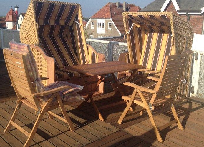 großer Regendusche und eine 50 qm große eigene Dachterrasse mit 2 Strandkörben,