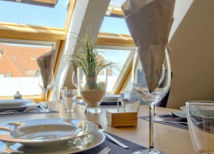 Meerblick und Meeresrauschen sucht, wird durch die „Riesendachterrasse“ mit Zugang über den Hausflur,