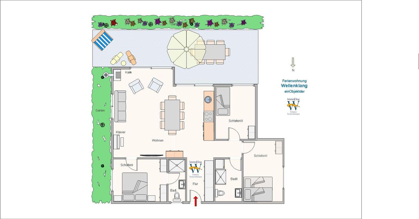 Herzlich willkommen in unserem Bungalow Wellenläufer mit unseren beiden Ferienwohnungen Wellenklang und Wellenspiel. Wir freuen uns, Sie begrüßen zu dürfen und möchten Sie zu entspannten und erholsamen Tage auf der Insel Wangerooge einladen. Beschreibung: Verbringen Sie im Wellenklang die schönste Zeit im Jahr mit Ihrer Familie oder Freunden und überzeugen Sie sich selbst: