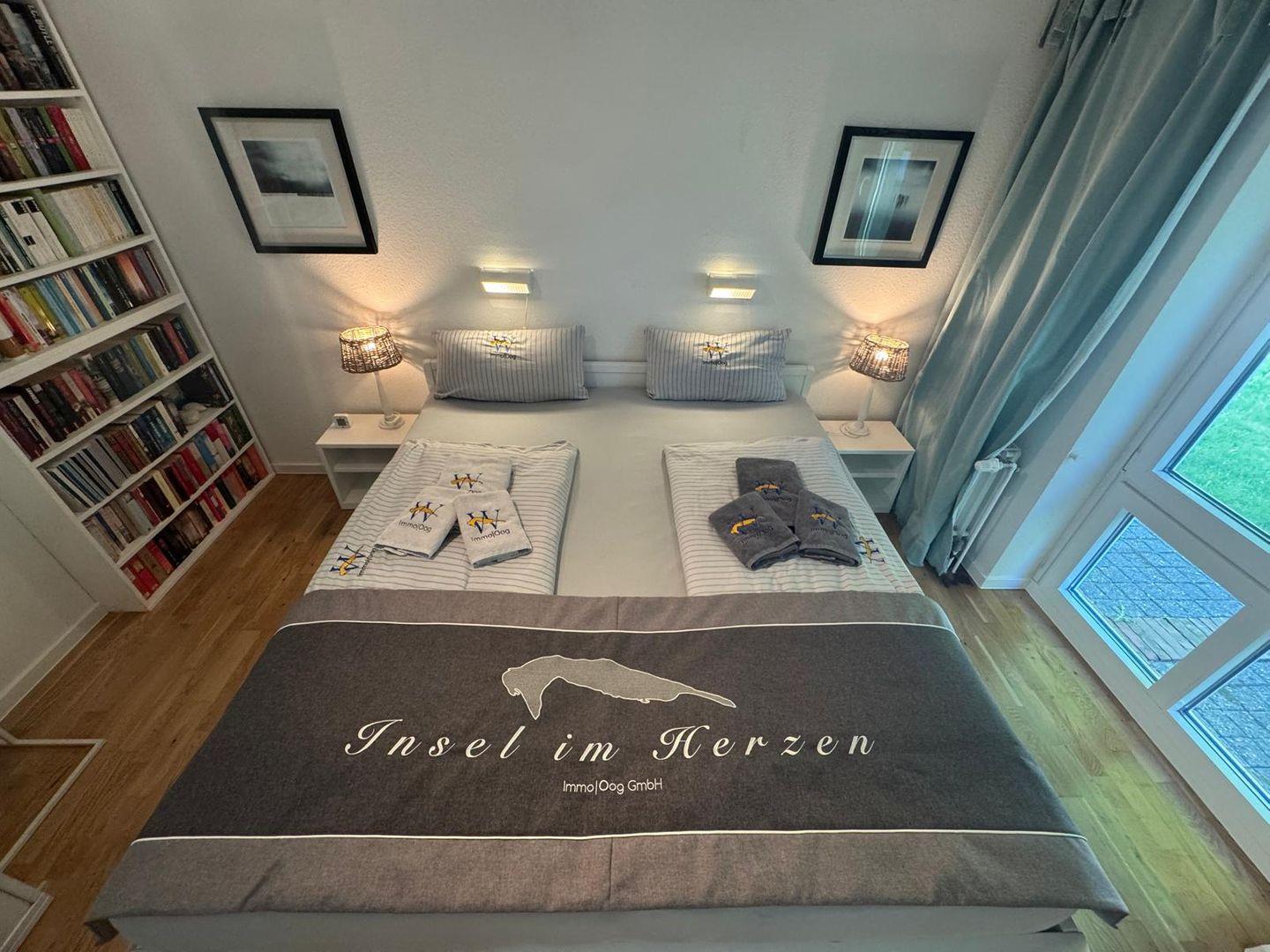 Die Ferienwohnung ist ebenerdig mit Terrasse und Garten (Südwest - ausgestattet mit Gartenmöbeln und Strandkorb) in bevorzugter, ruhiger und dennoch zentraler Lage. Die Wohnung hat ein Schlafzimmer mit Doppelbett und ein weiteres Zimmer mit zwei separaten Betten. Das Bad wurde kürzlich renoviert und hat eine Dusch-/ Badewanne. Im Wohnraum befindet sich der Essbereich mit angrenzender Küche und ein gemütliches Ecksofa zum Entspannen vor dem TV. Nichtraucherwohnung; Hunde sind willkommen.