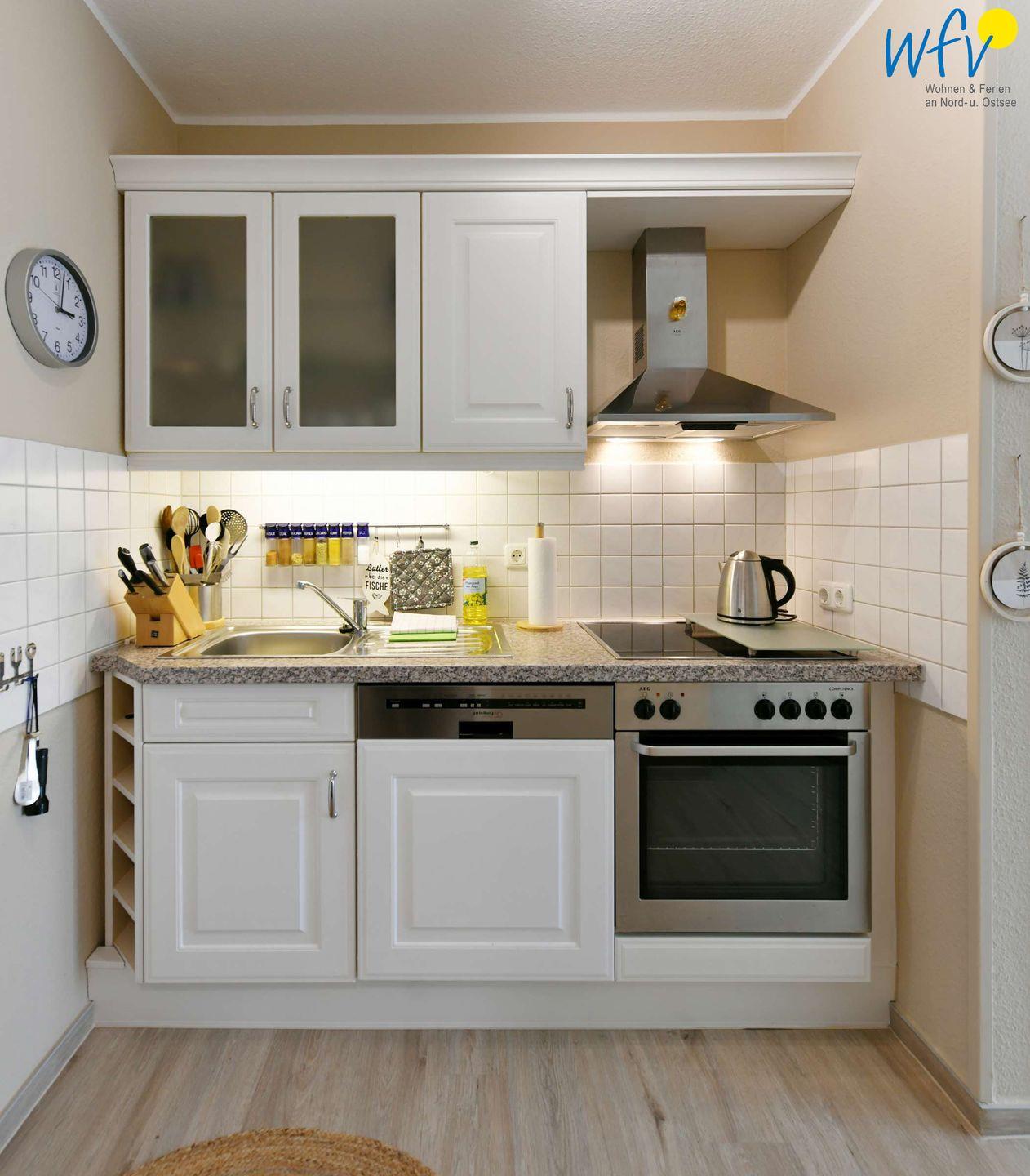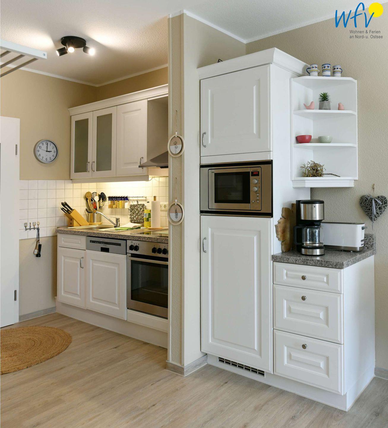 In der top ausgestatteten Küchenzeile mit Ceranfeld, Backofen und Mikrowelle lassen sich schnell und einfach kleine Snacks oder leckere Gerichte zubereiten. Und während Sie im Sandwichtoaster den Proviant für die Fahrradtour backen, säubert die Spülmaschine bereits das Frühstücksgeschirr.