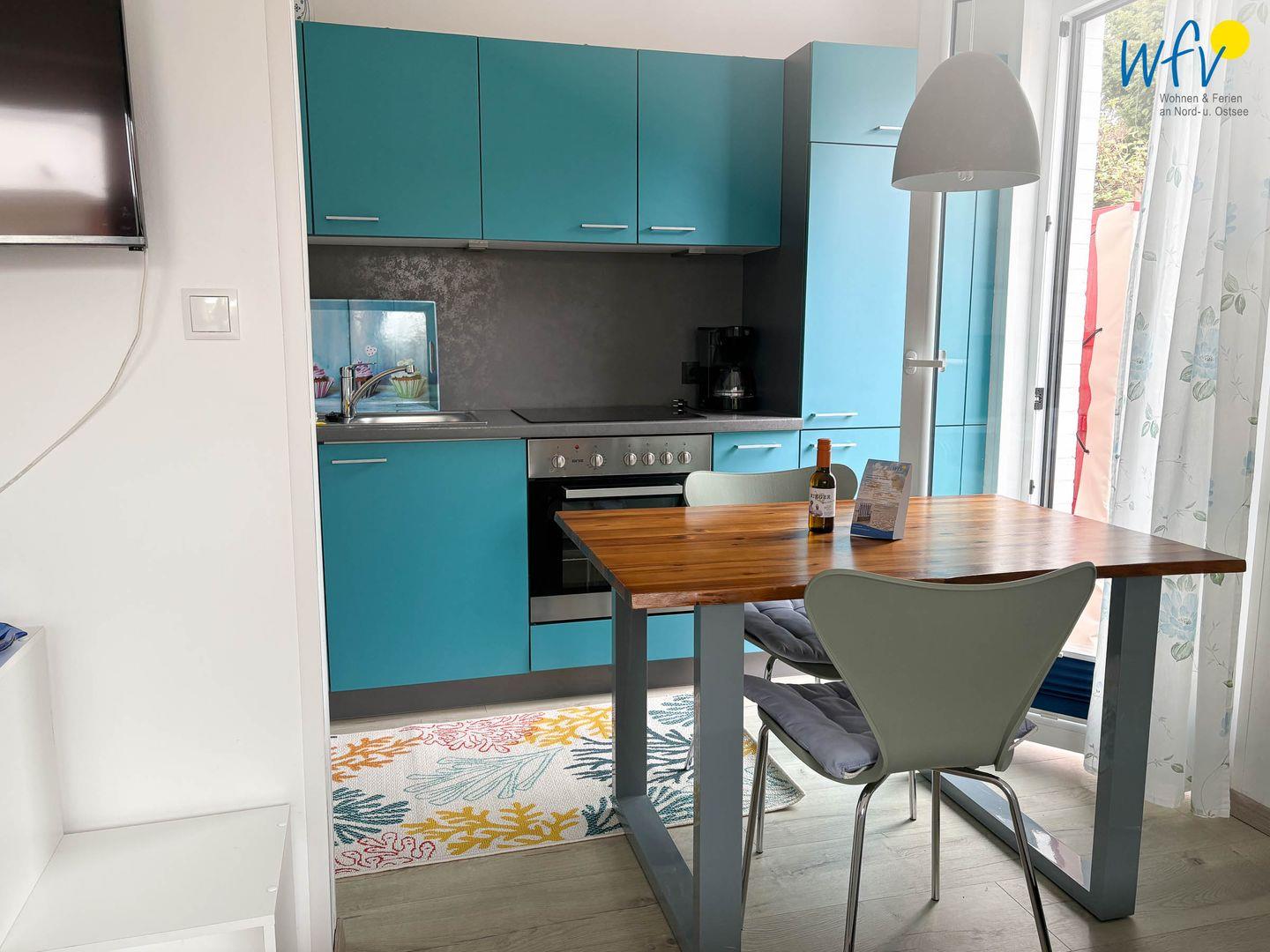Der Rucksack mit Snacks für den Ausflug ist schnell gepackt, denn die moderne Küchenzeile mit Ceranfeld und Backofen bietet Ihnen jeglichen Komfort für eine einfache Zubereitung. Während Sie die Badesachen zusammensuchen, erledigt die Spülmaschine den Abwasch.