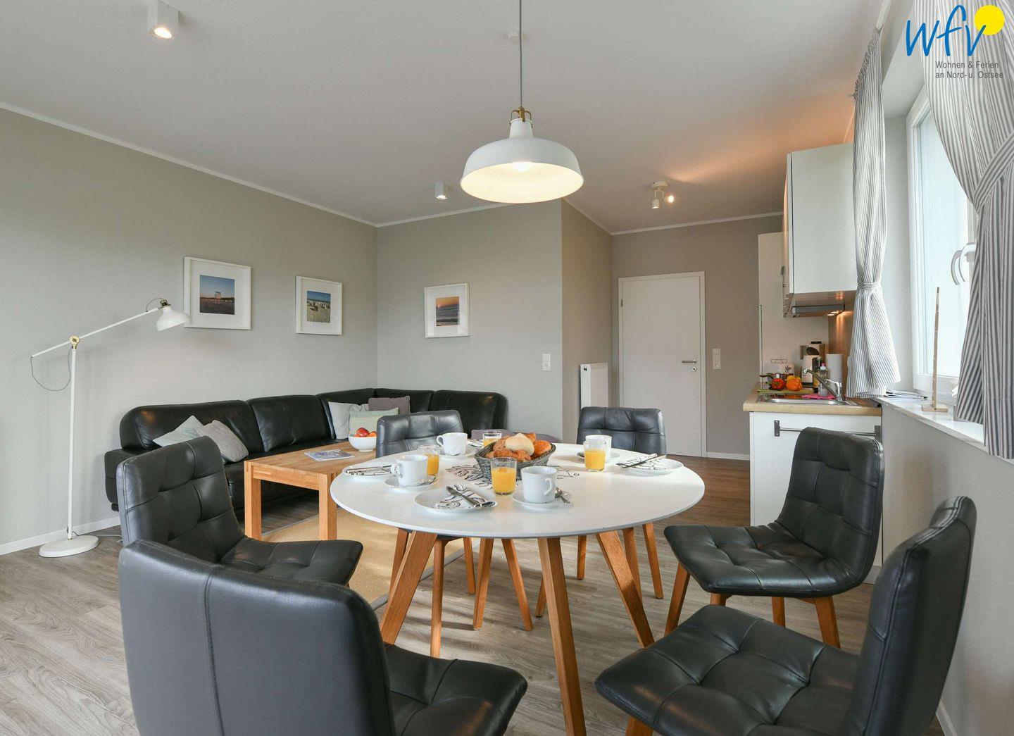 Die Maisonettwohnung erstreckt sich über das Erdgeschoss und den Souterrain. Eine hochwertige Einrichtung in hellen harmonischen Farben sowie ein schöner Lichteinfall lassen direkt ein Gefühl der Erholung aufkommen! Im Erdgeschoss lädt ein großzügiger Wohnraum mit Couchecke, integrierter Küche und Essplatz zu gemütlichen Stunden ein. Ganz entspannt einen Film schauen, Musik hören oder gemeinsam Lieblingsgerichte kochen - das ist Urlaub!