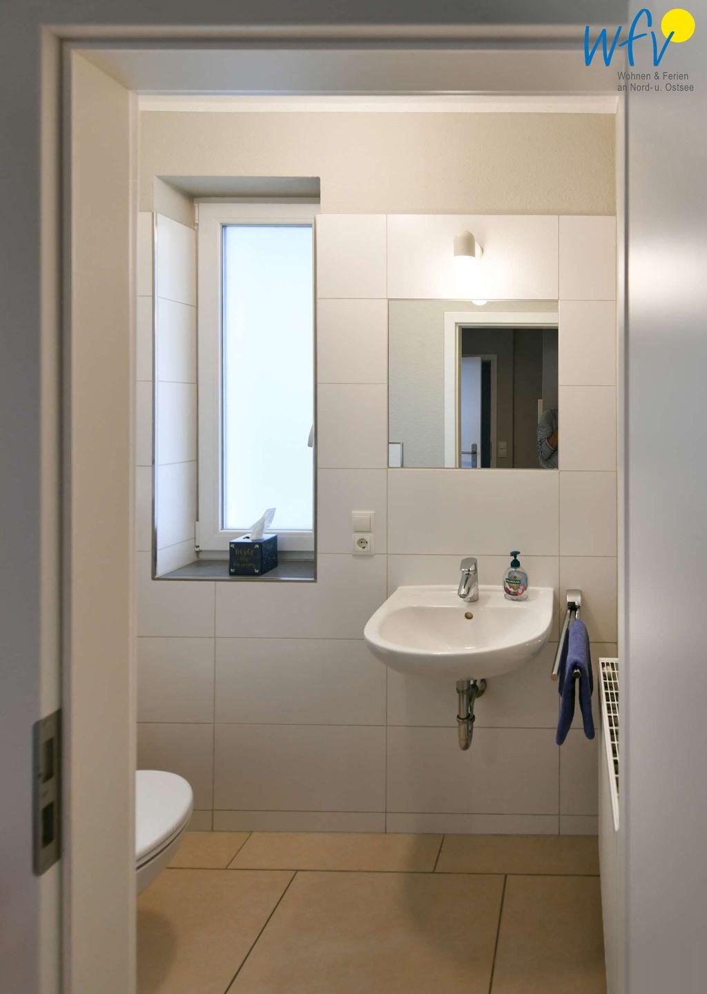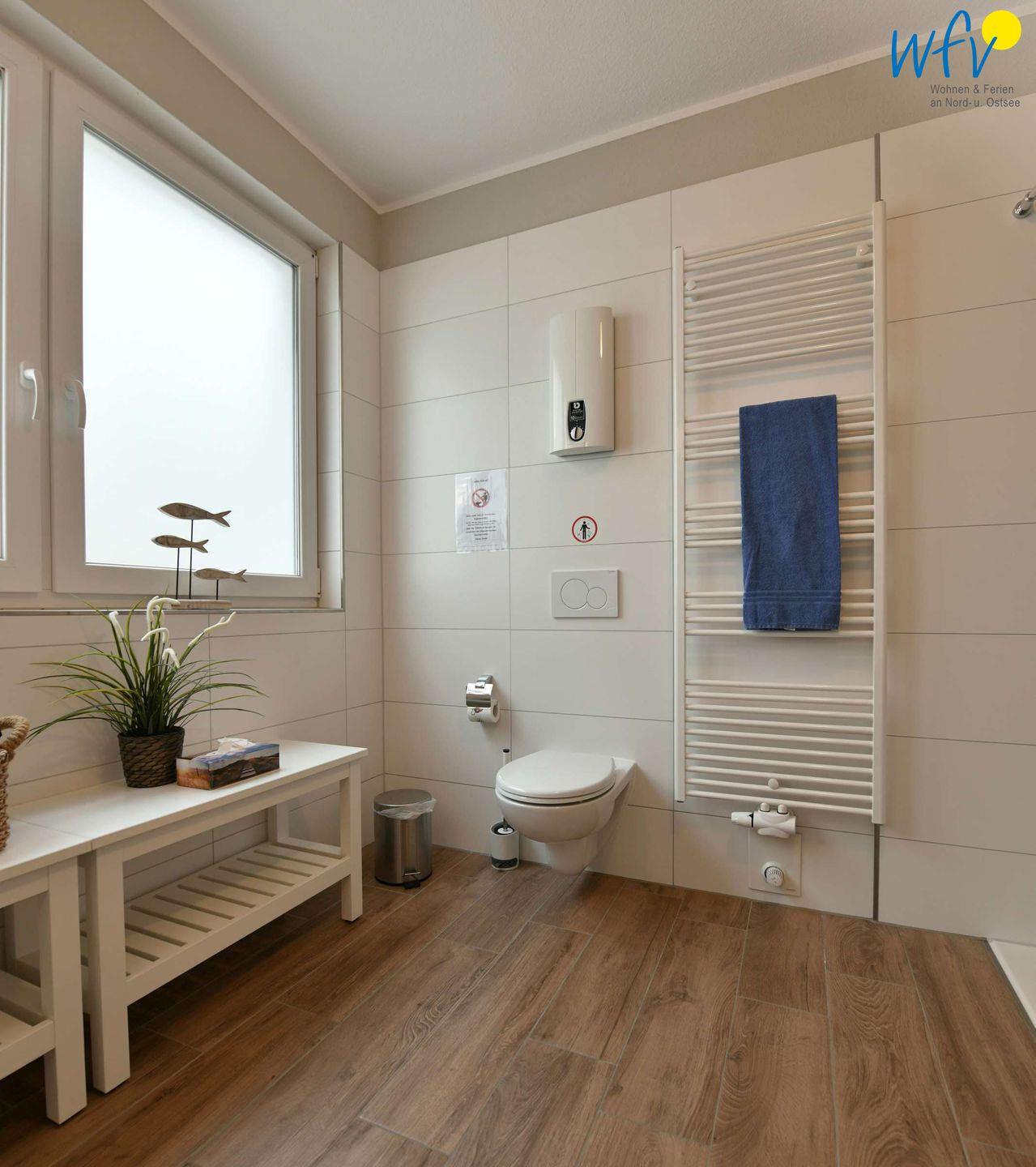 Ein Gäste-WC (EG) und ein großes Familienbadezimmer (Sout) ermöglichen eine angenehme Aufteilung unter den Gästen.