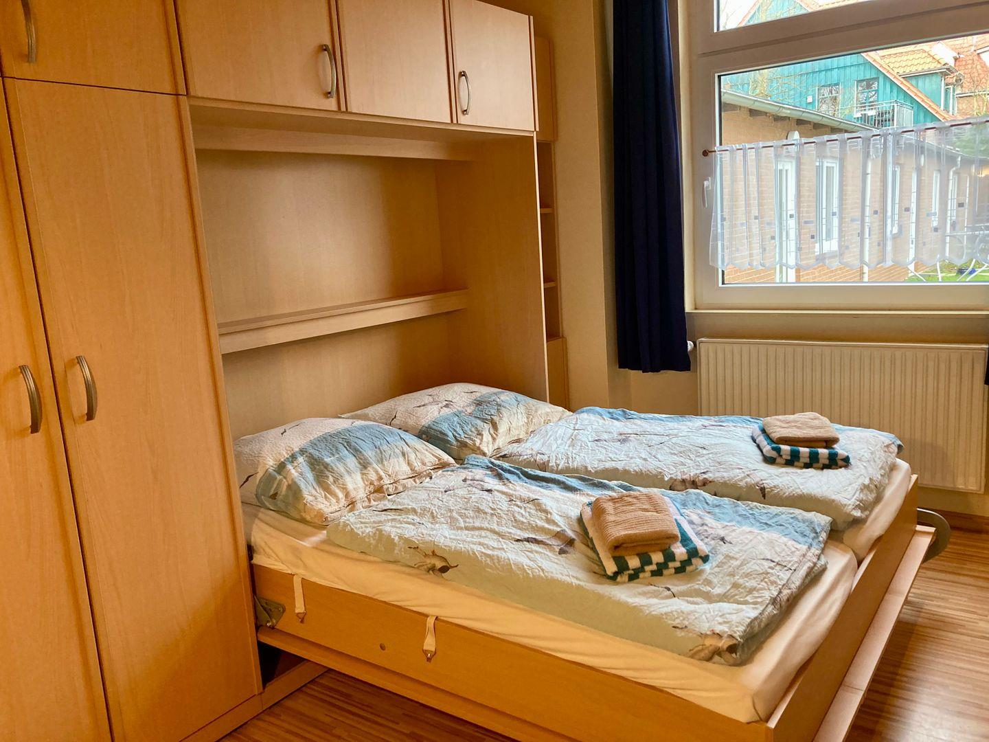Dieses Einraumappartement in zentraler Lage ist mit einem guten Doppelschrankbett ausgestattet, einer kleinen Singleküche mit gemütlicher Sitzecke und einem modernen Badezimmer.