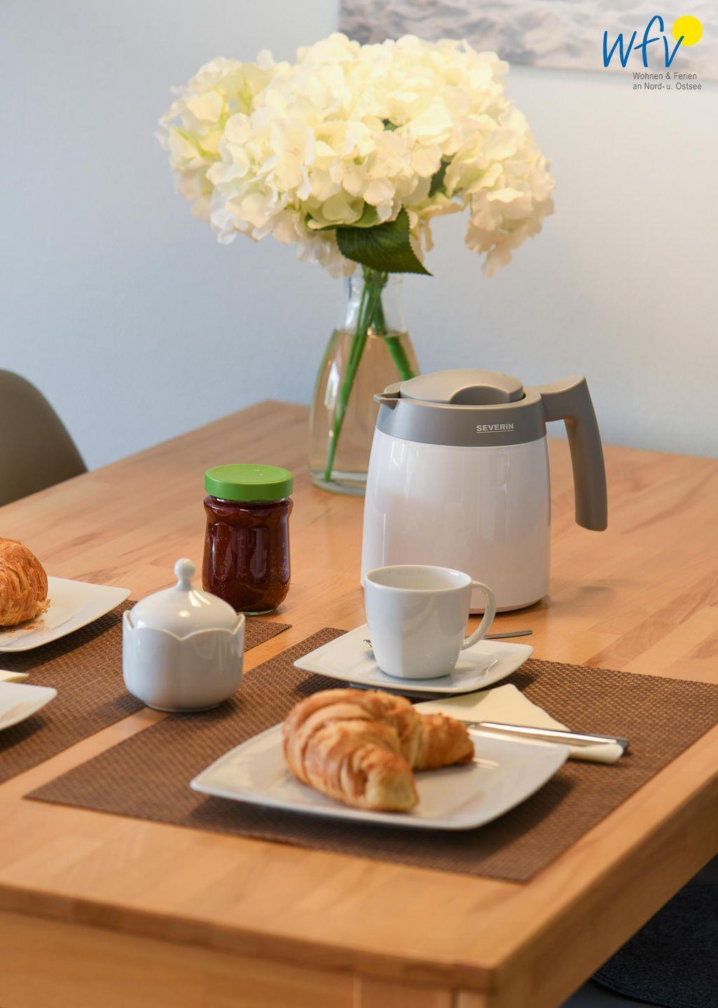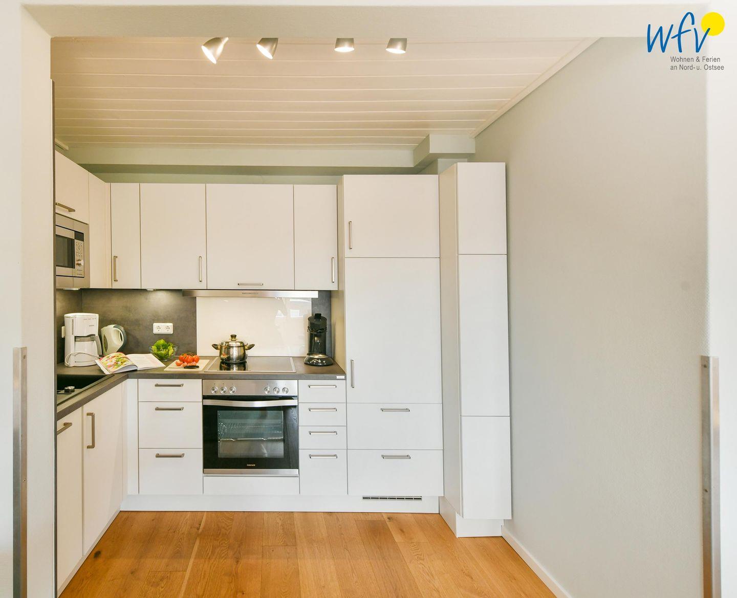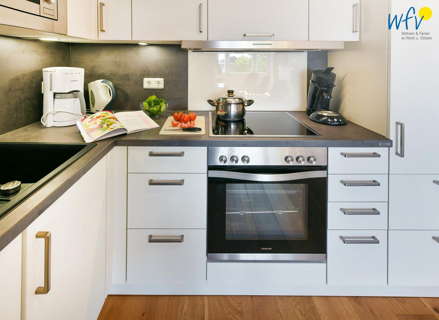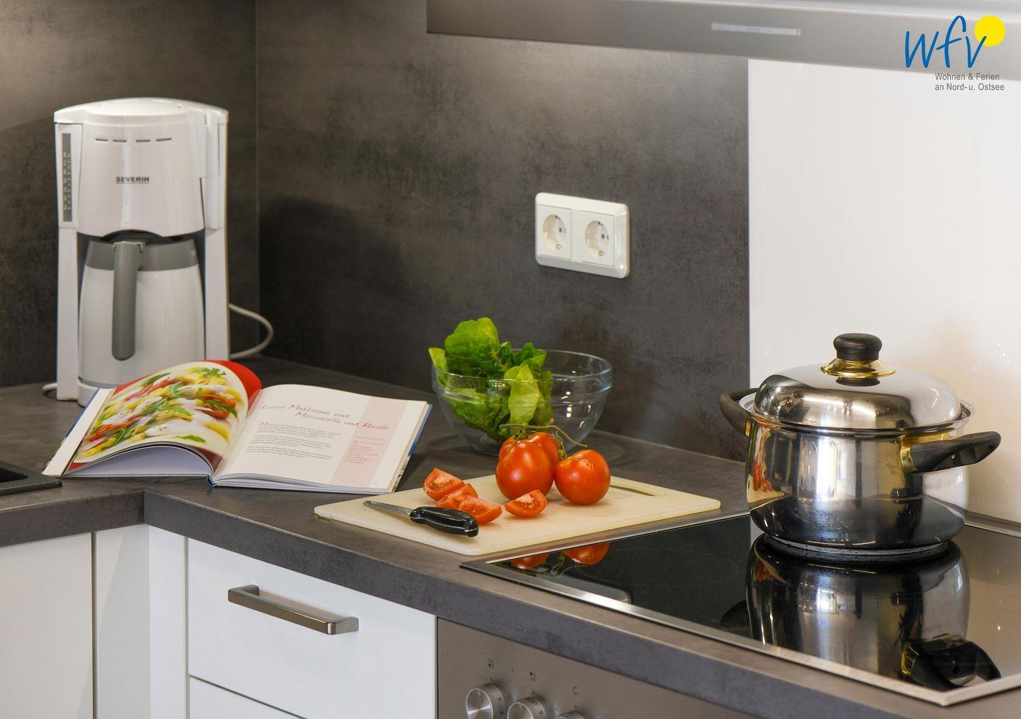 Für die bequeme Selbstverpflegung verfügt die Ferienwohnung über eine gut ausgestattete Küche - u.a. mit Ceranherd, Backofen, Mikrowelle und Geschirrspüler. Eine klassische Kaffeemaschine und eine Senseo machen den Morgenkaffee zum Genuss!