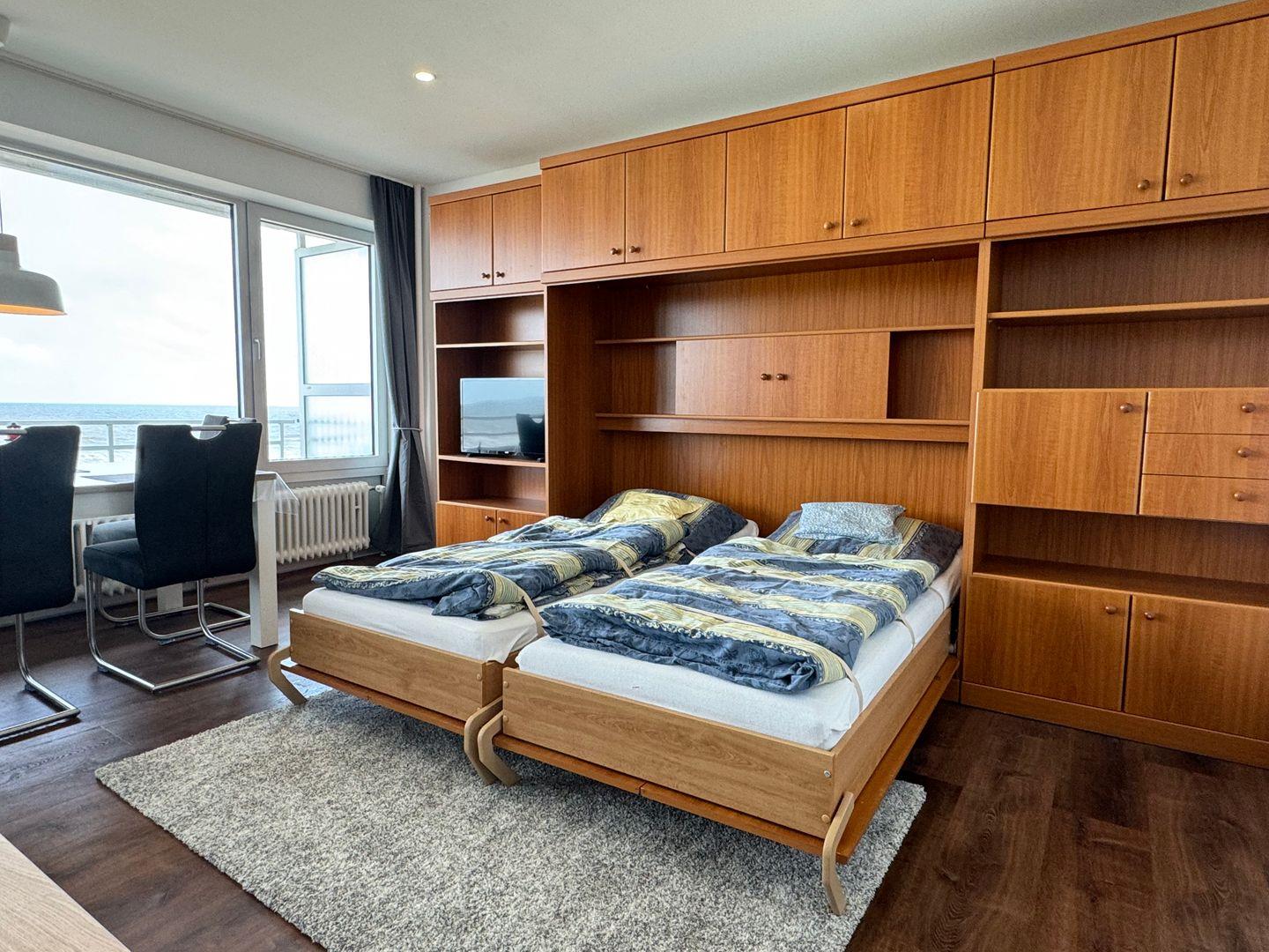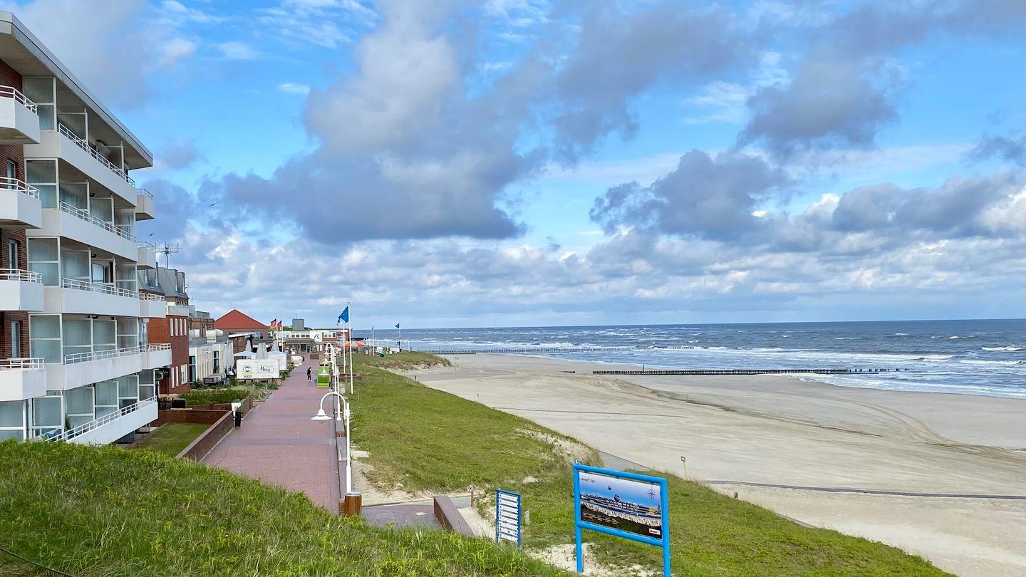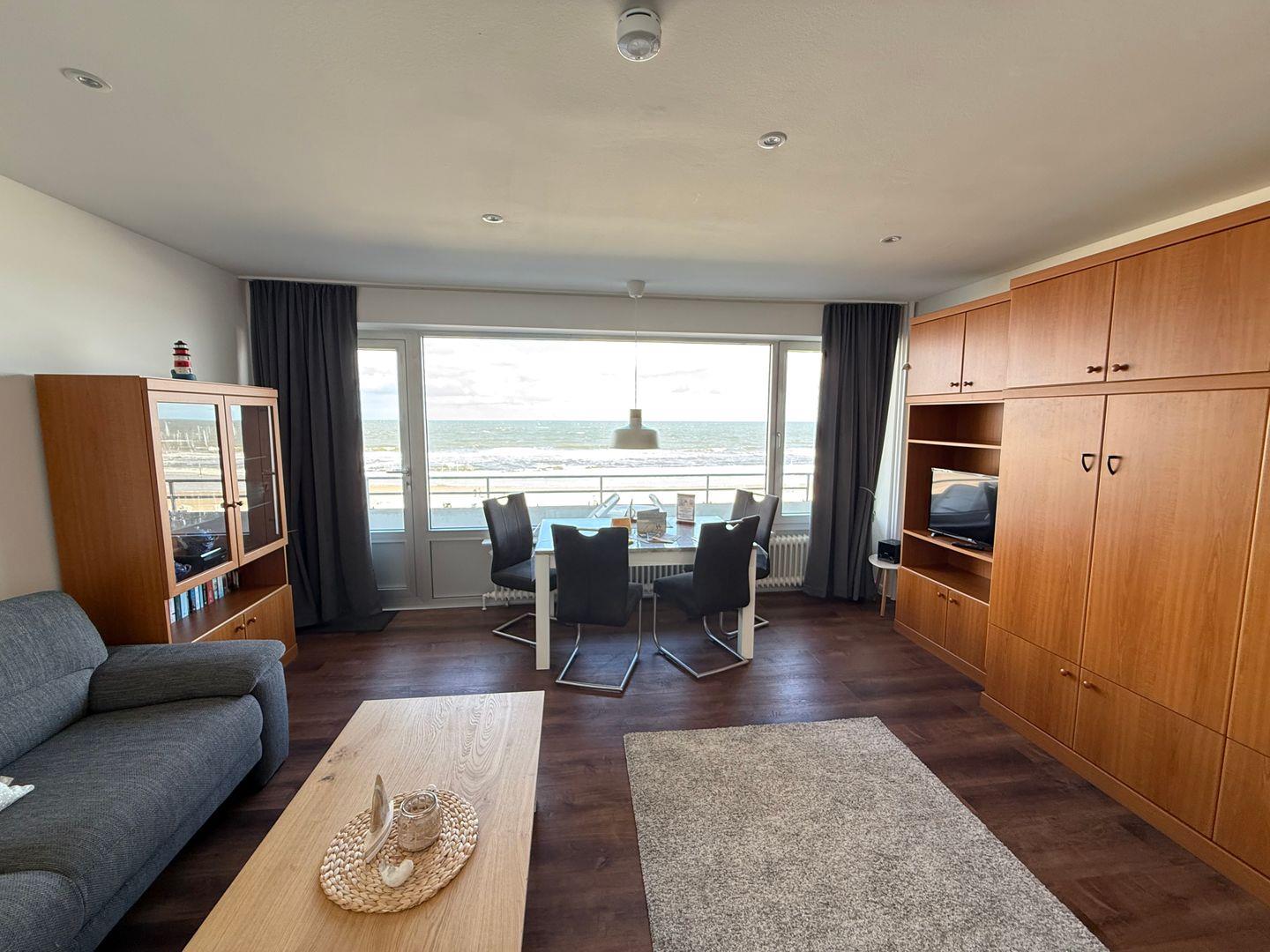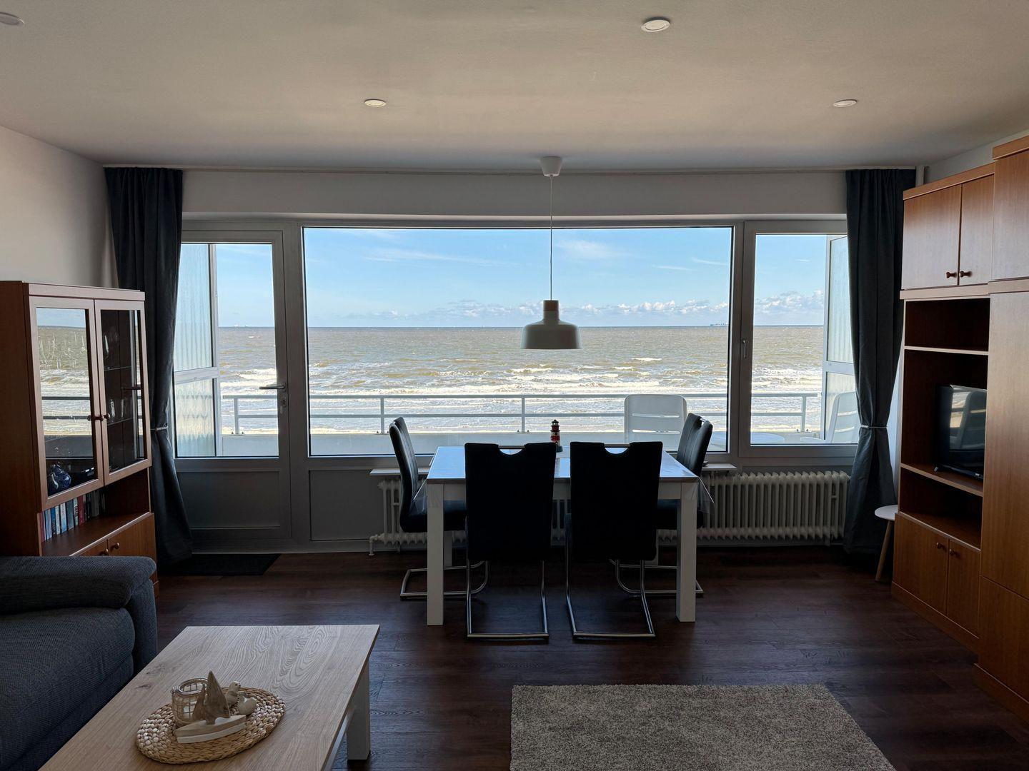 Ferienwohnung Himmel und Meer besticht mit einem traumhaftem Meerblick auf die Nordsee. Die wunderschöne Ferienwohnung befindet sich im Haus Monopol direkt an der oberen Strandpromenade. Sie sind dadurch ganz in der Nähe des Wangerooger Ortszentrums und auch mitten im Inselgeschehen dabei. Der große Balkon, die Fensterfront und die Lage verschafft Ihnen mehr Nähe zum Meer. Sie sehen nicht nur das Strandleben, und die Meeresbrandung, sondern auch die berühmten Leuchttürme „Alte Weser“ und „Roter Sand“ und den Schiffsverkehr. Durch die große Fensterfront ist der Schlaf-/Wohnbereich lichtdurchflutet.Das Bad hat eine moderne ebenerdige Dusche. Die 2024 renovierte Wohnung bietet Platz für bis zu 2 Personen. Diese Ferienwohnung ist eine Nichtraucherwohnung, Haustiere sind nicht erlaubt.