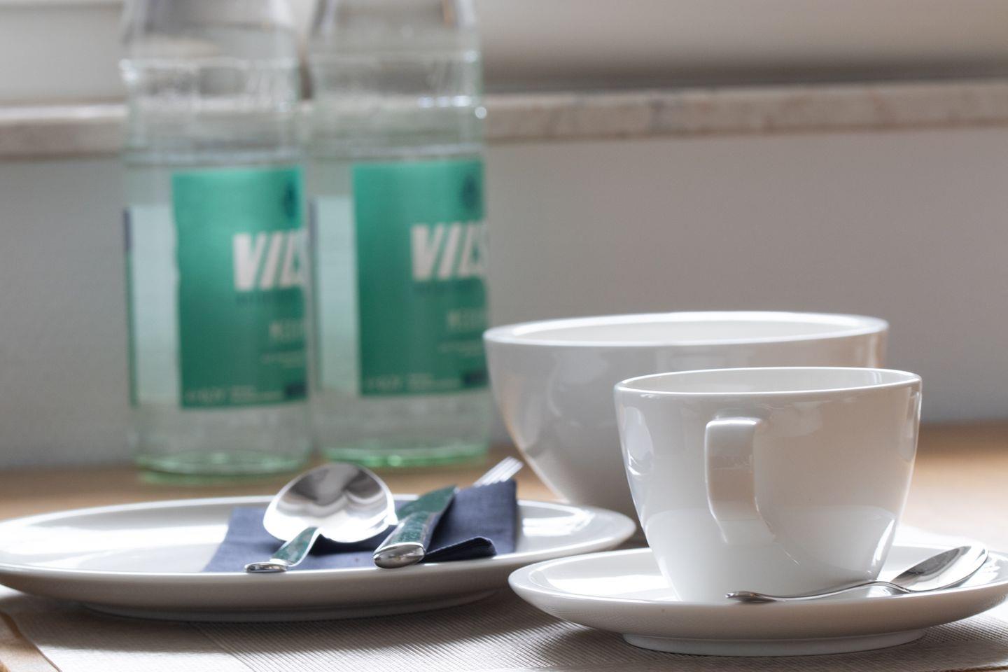 Küche: Separate Küche mit Ceran-Kochfeld, Backofen, Kühlschrank, Geschirrspüler – alles Miele Markengeräte. Zusätzlich ausgestattet mit Kaffeemaschine, Wasserkocher, Toaster, Zauberstab, Geschirr, Besteck, Küchentüchern, Spültuch, Spülschwamm, Spülmittel, Spültaps, Müllbeuteln, Backpapier, Alufolie und Frischhaltefolie.