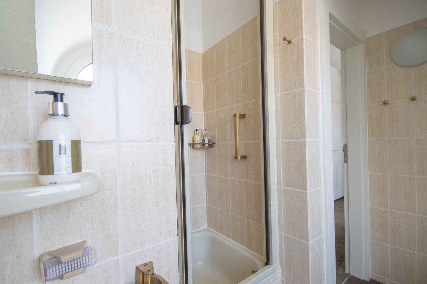 Badezimmer: Helles Tageslichtdusch-Wannenbad für eure Entspannung.