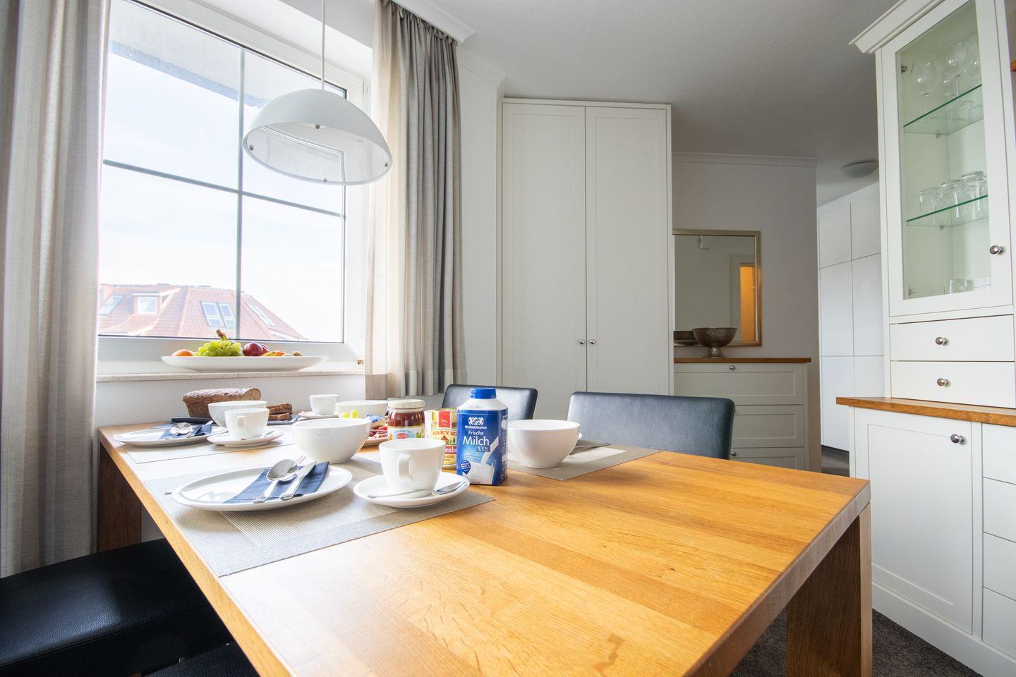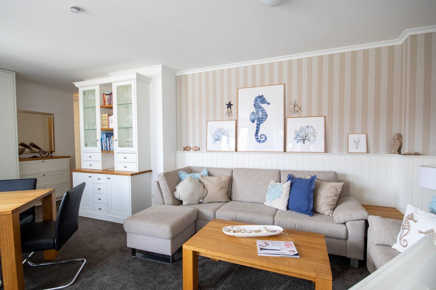 Willkommen in unserer luxuriösen Ferienwohnung auf Wangerooge, gelegen an der Oberen Strandpromenade mit direktem Meerblick. Diese exklusive Wohnung im 2. Obergeschoss bietet Platz für bis zu 5 Personen und besticht durch ihre hochwertige Ausstattung und liebevollen Details.