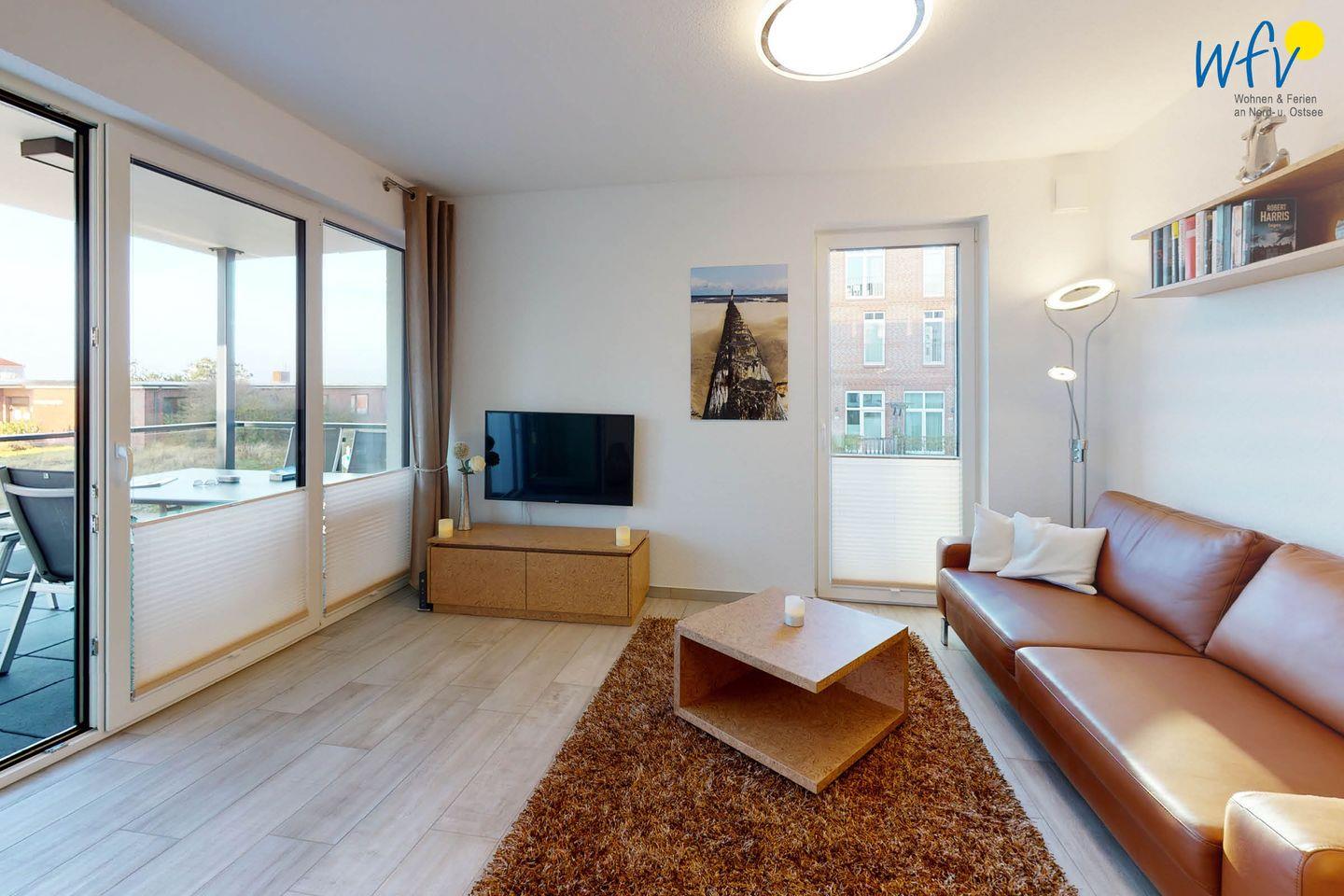 Bereits beim Frühstück können Sie auf dem überdachten und windgeschützten Balkon dieser - im November 2020 fertiggestellten - Traumwohnung die Nordsee sehen (eingeschränkt). Verweilen Sie im exklusiven Wohn- Essbereich mit großem, gemütlichem Ledersofa, lassen Sie Ihren Blick über die einzigartigen Manufaktur-Holzmöbel gleiten und fühlen Sie sich einfach wohl in Ihrem Urlaub auf Wangerooge! Zwei moderne Fernseher mit Internetzugang, Bücher für viele Geschmäcker und Spiele für Groß und Klein sorgen für zusätzlichen Wohnkomfort.