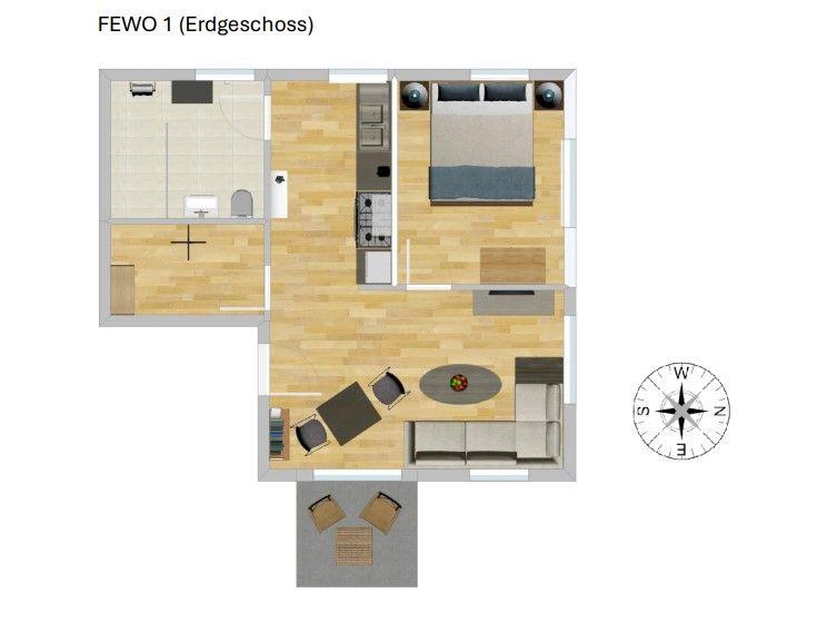 Hinweise: Die Wohnung befindet sich im EG. Es handelt sich um ein Nicht-Raucher-Objekt. Für Fahrräder ist ein Stellplatz vorhanden.