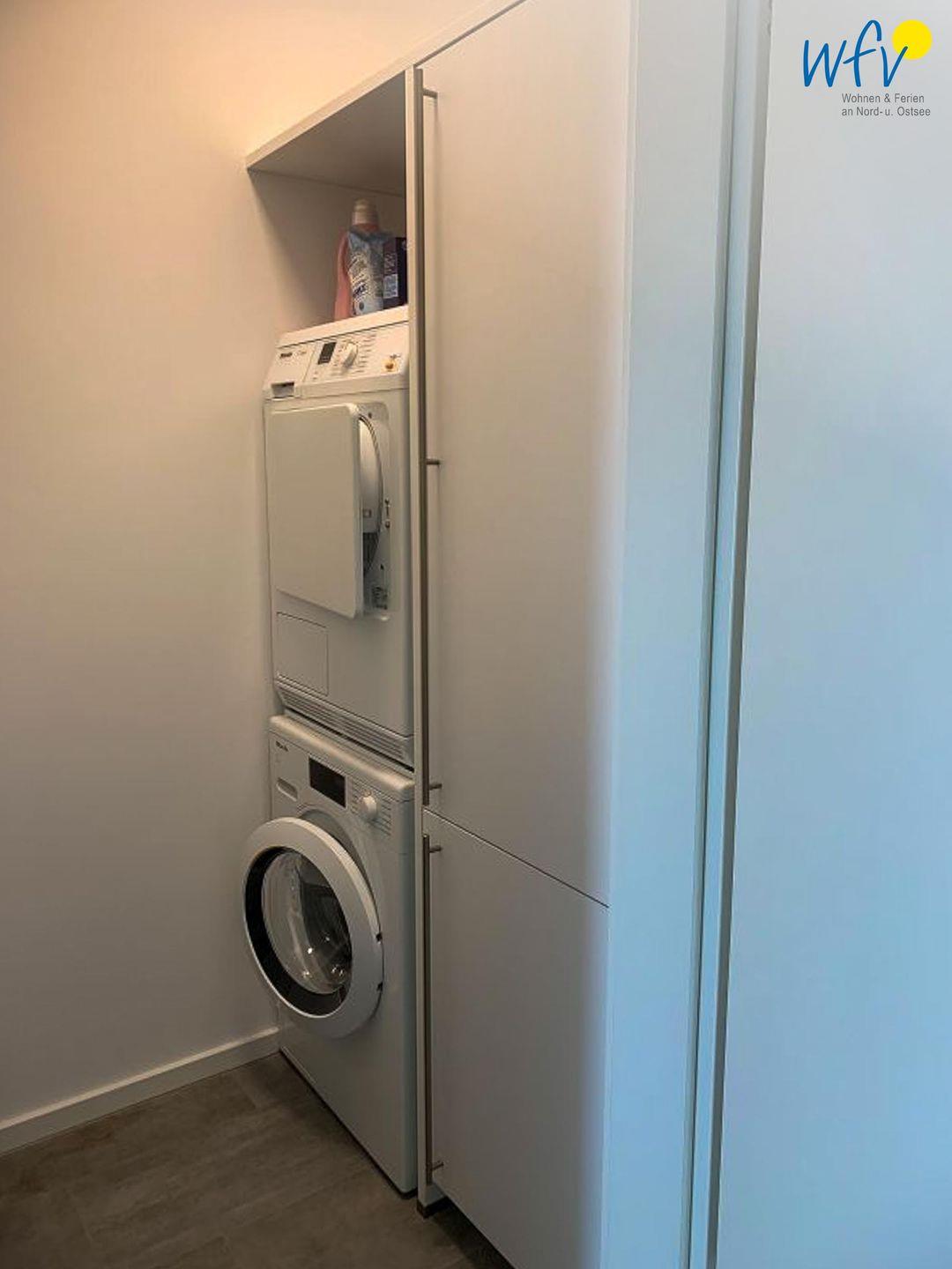 Weiterer Wohnkomfort besteht durch Annehmlichkeiten wie freies WLAN, ein Ledersofa mit 1,60 m Liegefläche, zwei moderne Fernseher mit Internet-Anschluss und ein Bose Home Speaker sowie eine Miele-Waschmaschine und ein Trockner (in der Wohnung).