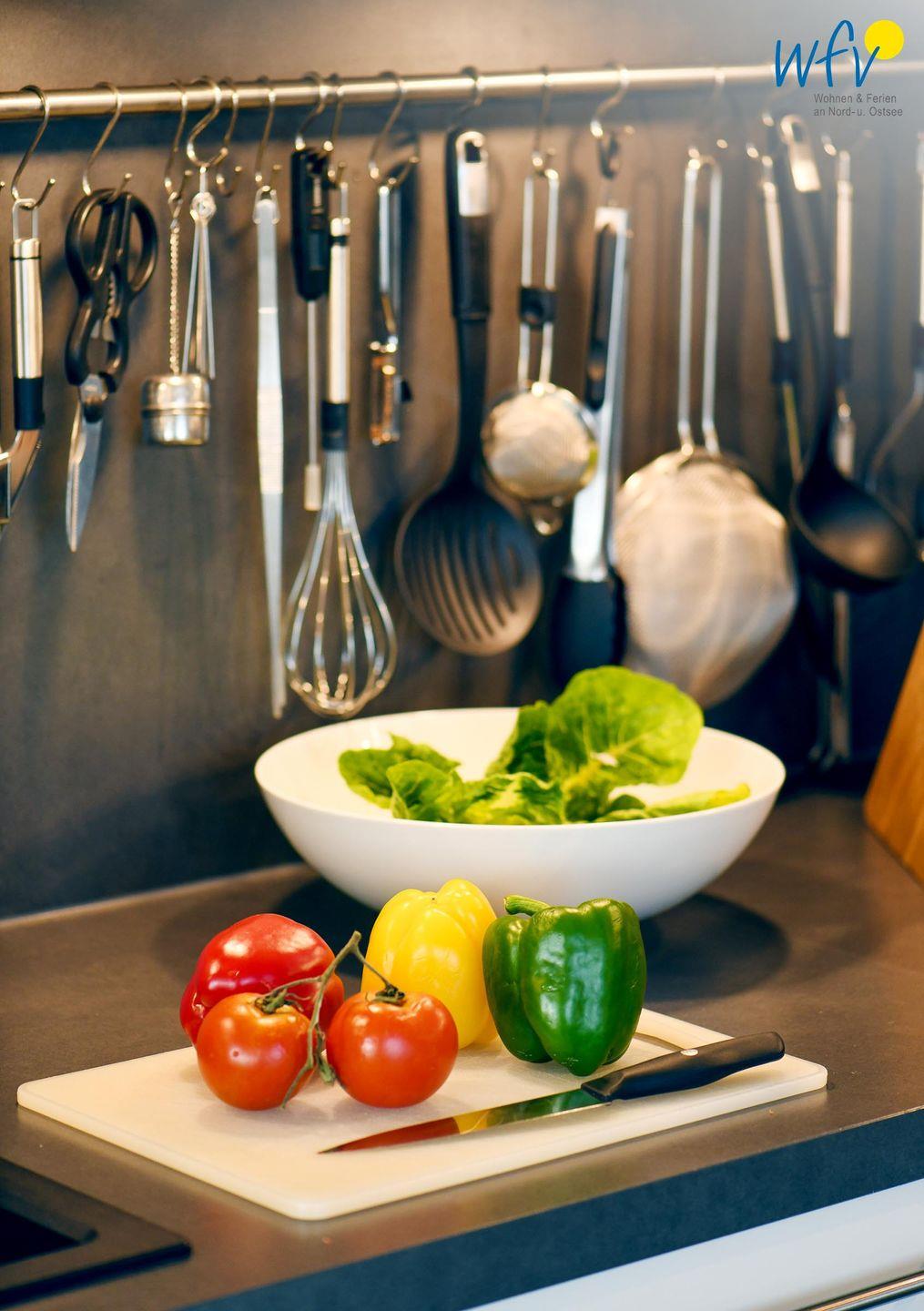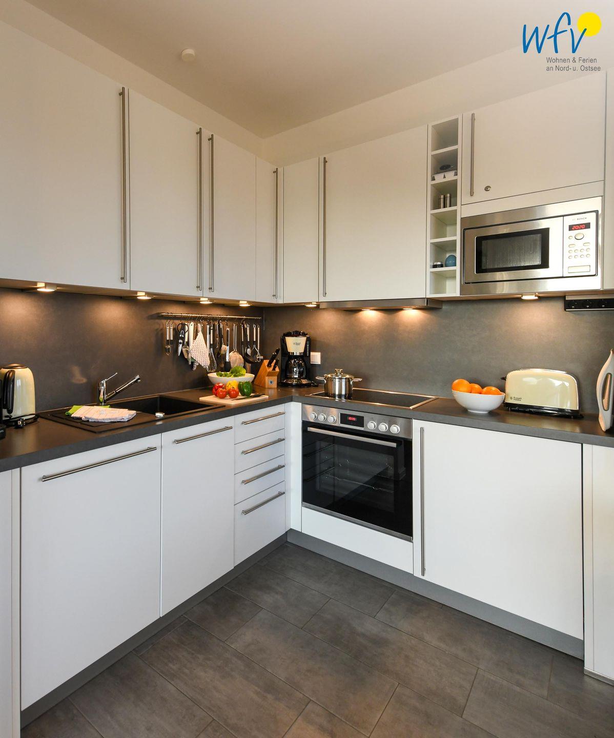 Wenn Sie einmal nicht ins Restaurant gehen möchten, lassen sich in der hochwertigen Einbauküche (u.a. mit Ceranherd, Backofen, Kühlschrank mit Gefrierfach, Mikrowelle und Geschirrspüler) bequem und einfach Ihre Lieblingsgerichte zubereiten. Für Kaffeegourmets steht eine Nespresso bereit; auch ein Milchaufschäumer, ein Waffeleisen und ein Flaschenwärmer sind vorhanden. Auf der einladenden Loggia mit Meerblick können Sie anschließend gemütlich essen und genießen - ein herrliches Urlaubsgefühl!