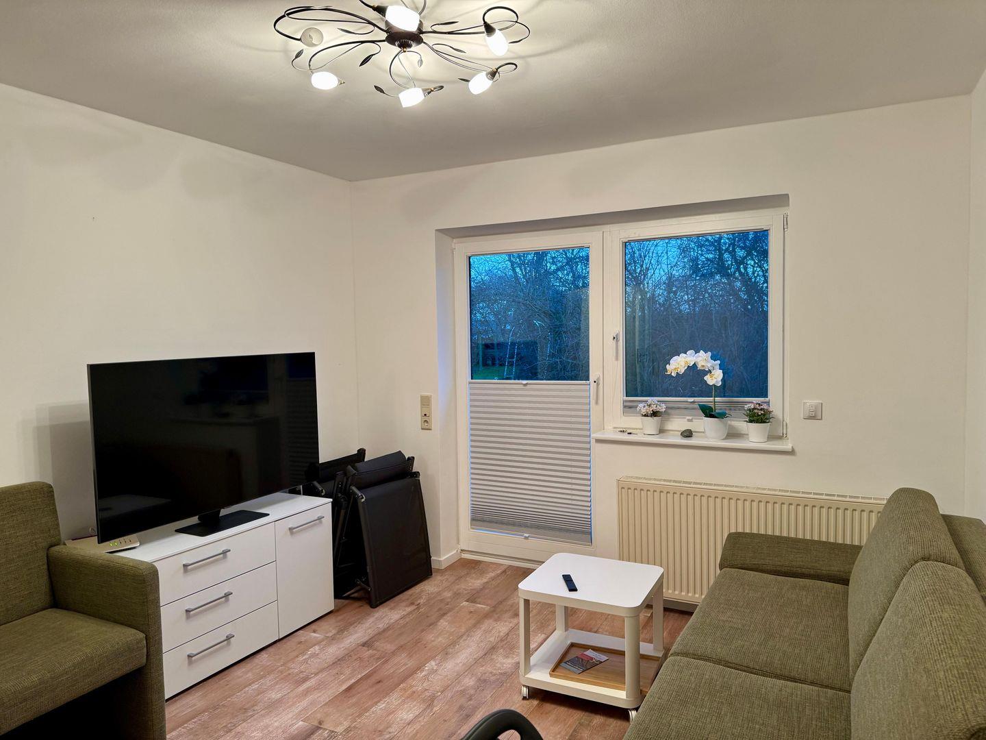 In dem Wohnraum mit Couchecke und Samsung-TV können Sie abends gemütlich zusammensitzen und fernsehen oder ein gutes Buch lesen. Freies WLAN (50 MBits/s) ermöglicht Ihnen, in Ruhe im Internet zu surfen oder zu streamen.